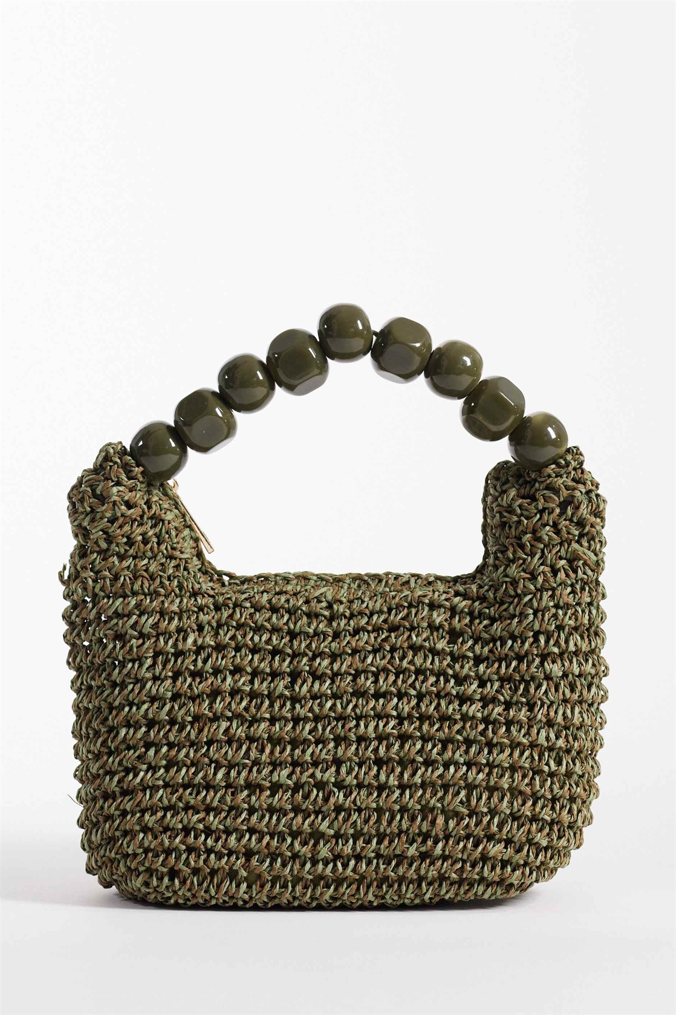Сумка-клатч из соломы с ручкой в виде шарика из смолы