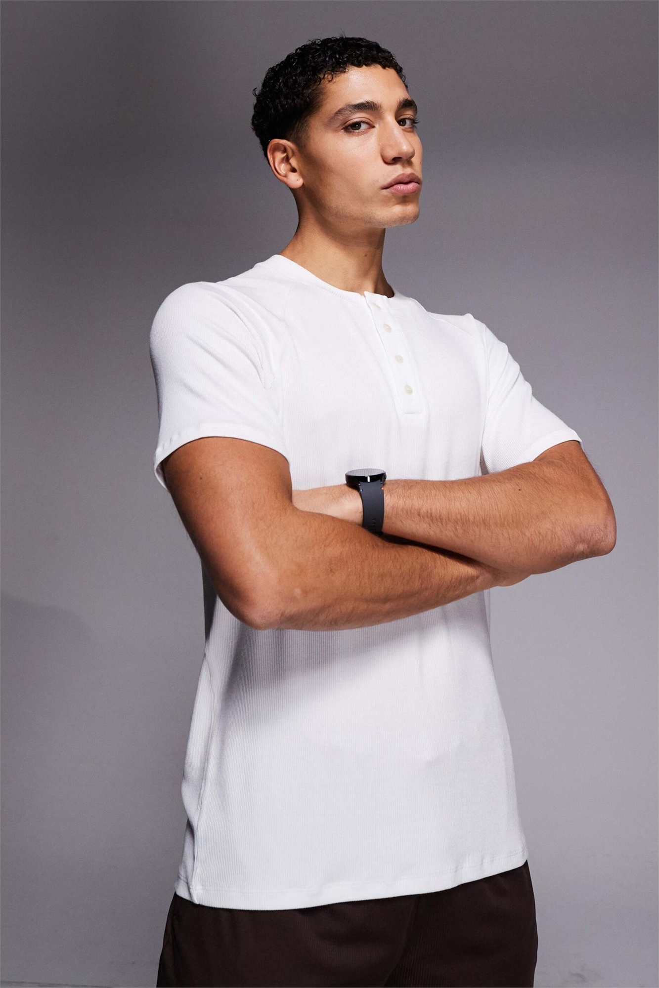 Футболка-хенли с рагланными рукавами и ультрамягкой модальной ребристой тканью, облегающего кроя, для отдыха