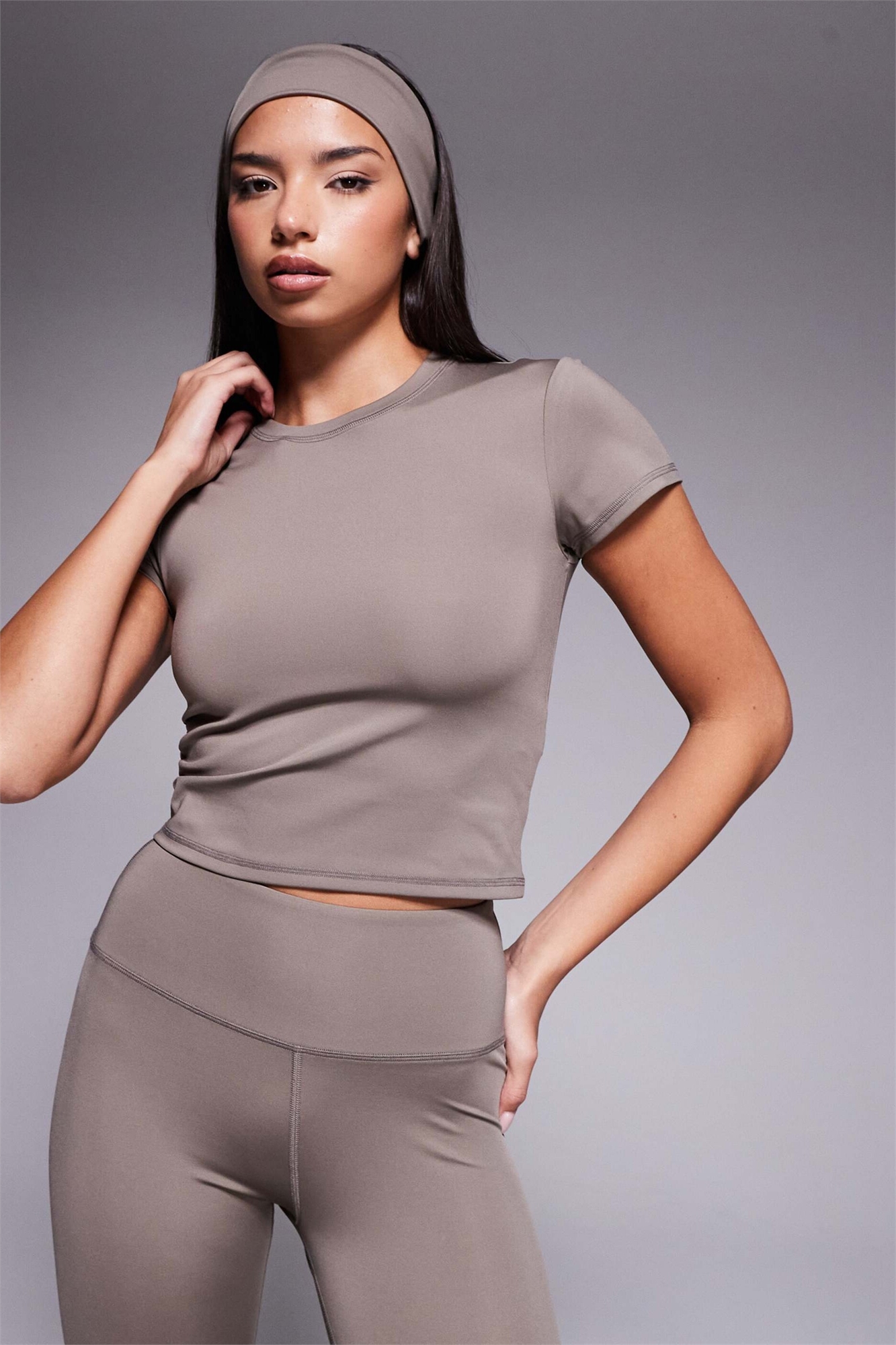 Спортивная одежда: гладкая эластичная ткань. Основной состав: 80% полиэстер, 20% эластан.