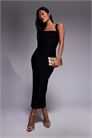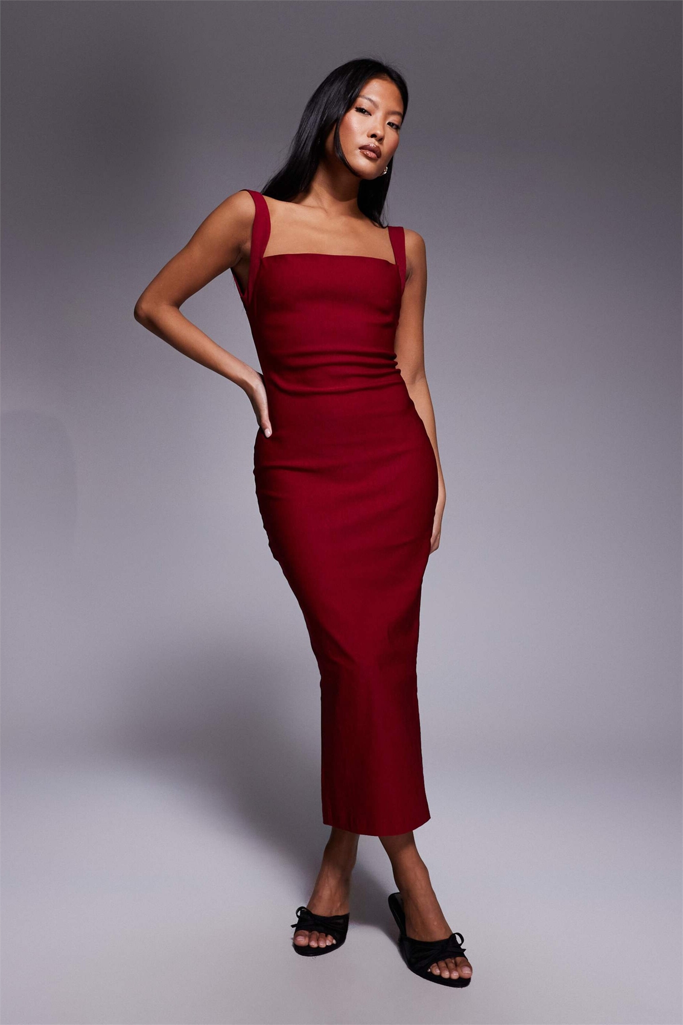 Платье средней длины из бенгалина с квадратным вырезом и вырезом на спине