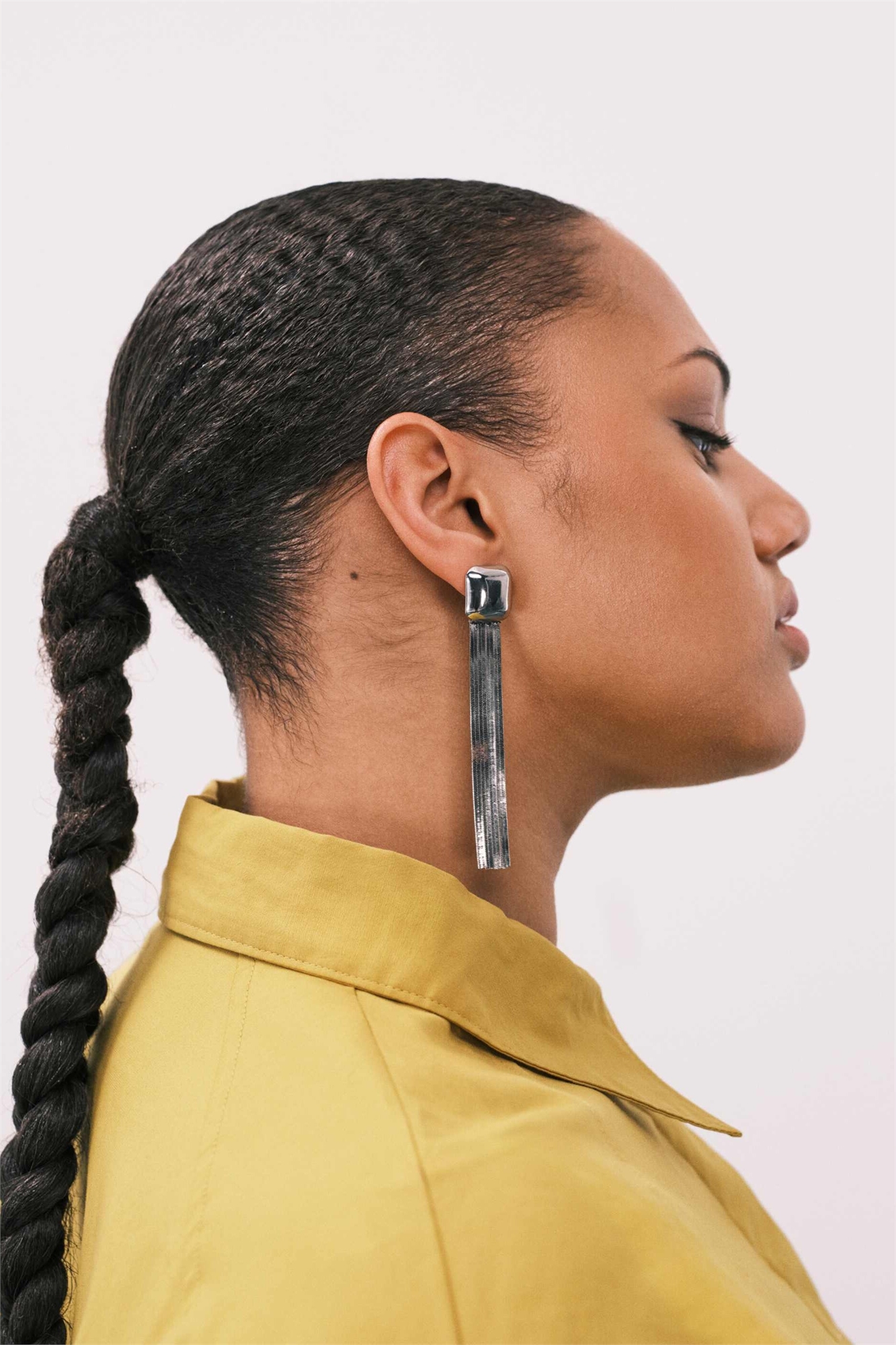Серьги-гвоздики с кисточками на змеиной цепочке