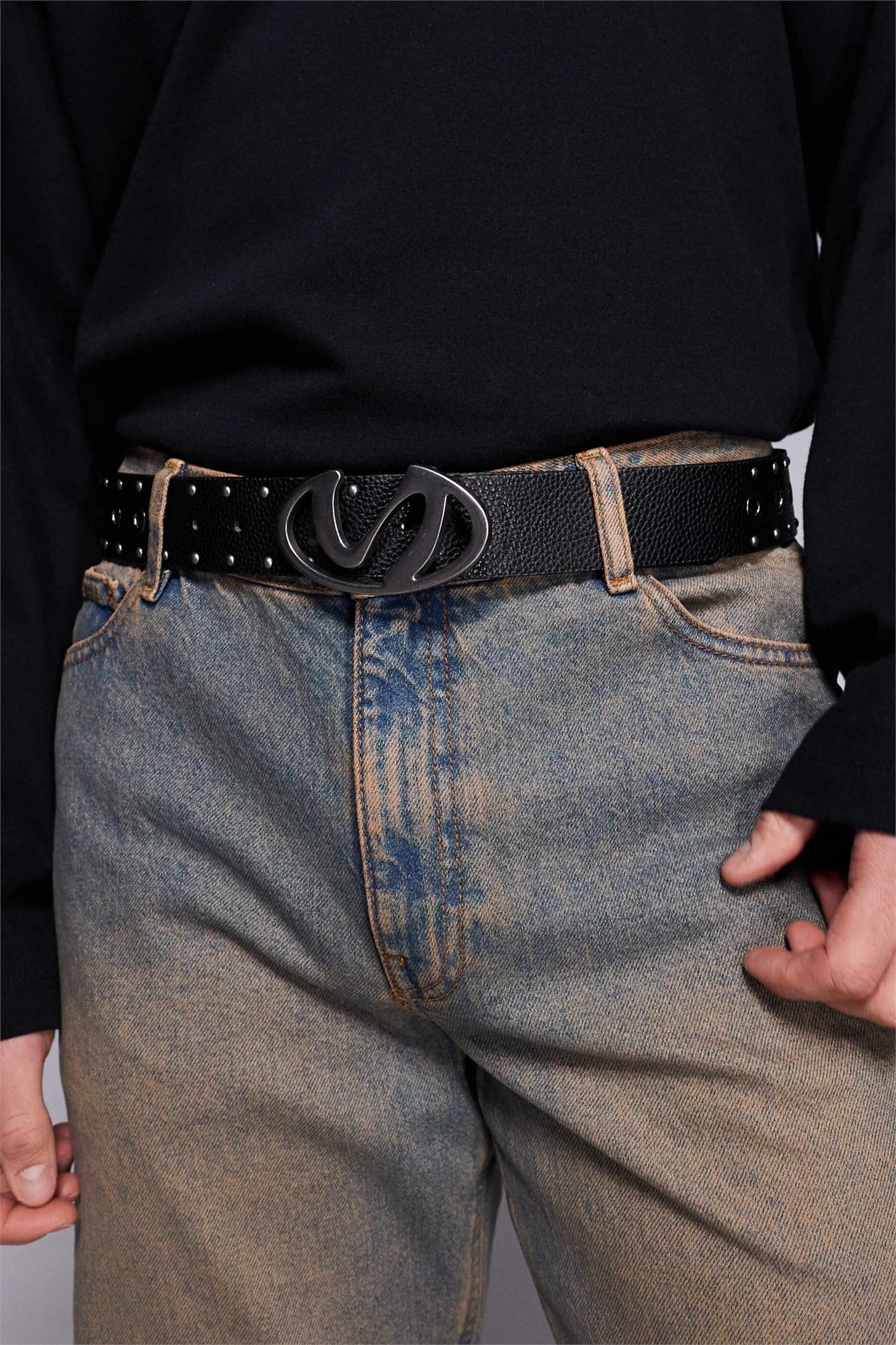 Ремень с овальной пряжкой из расплавленного металла и украшениями в виде отверстий
