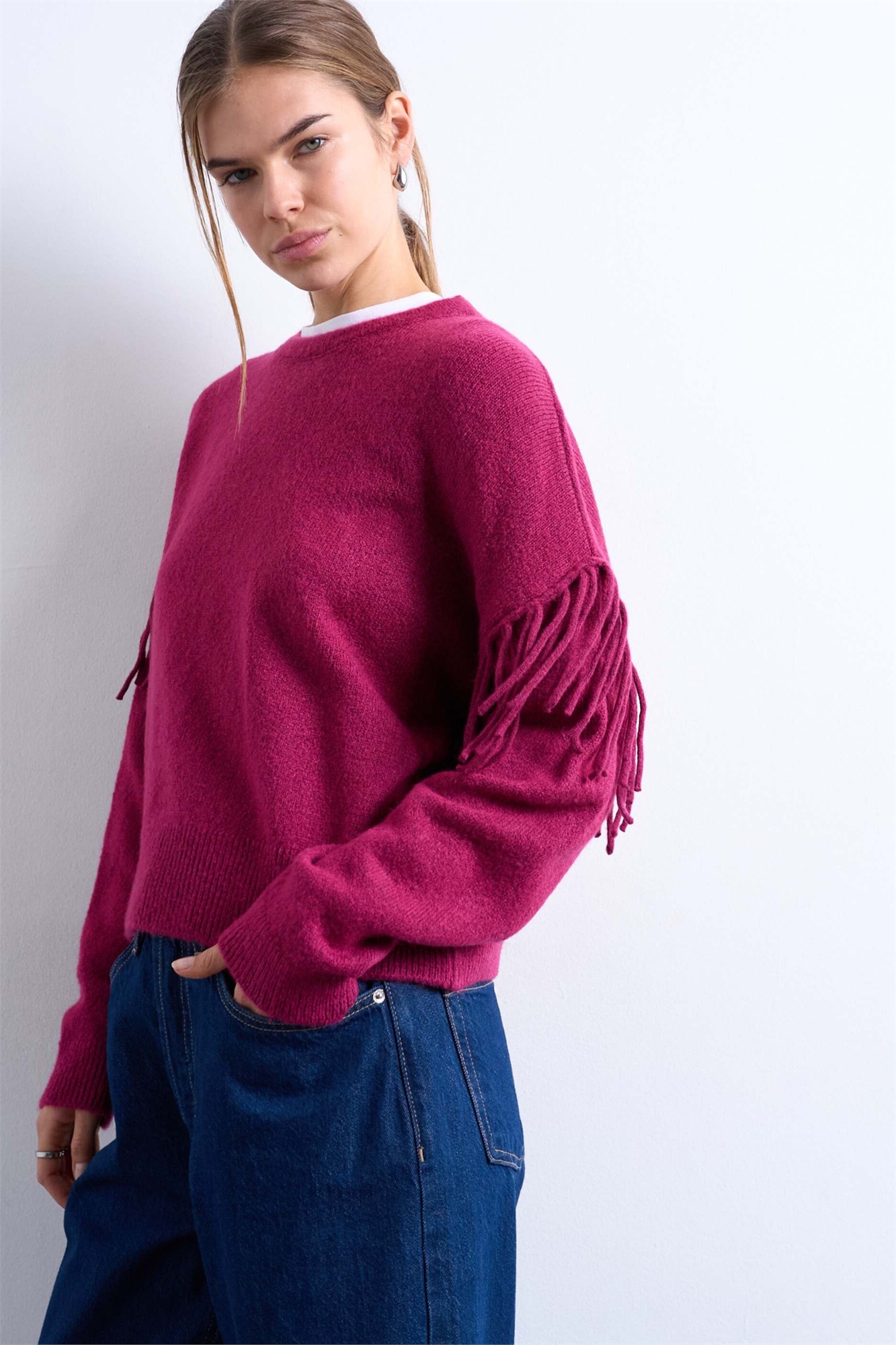 Свитер с вязаной бахромой