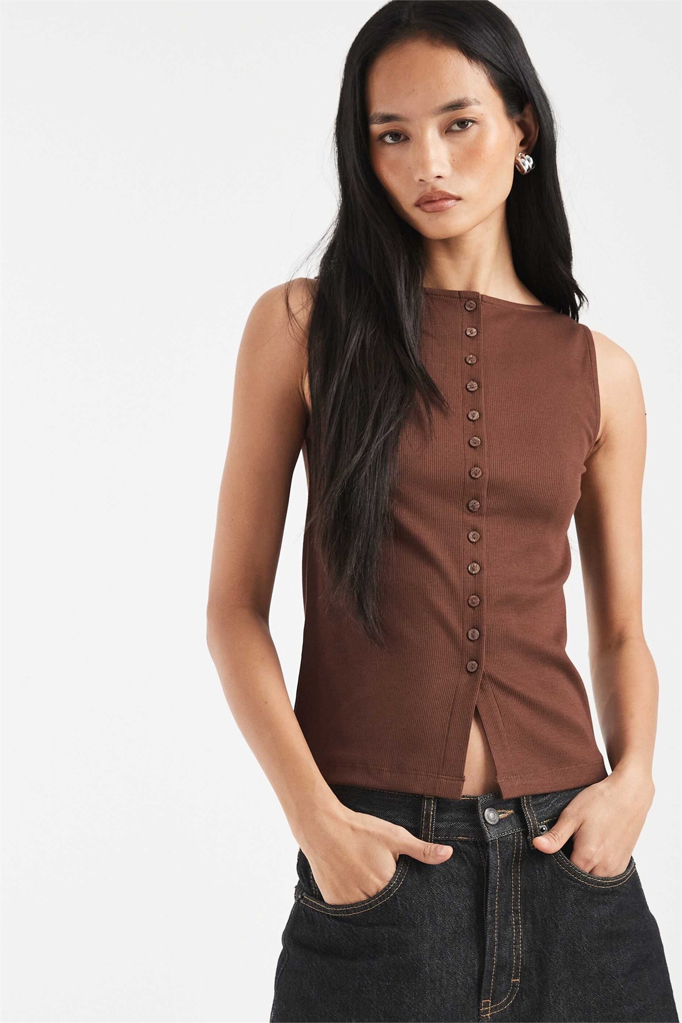 Майка с лодочным вырезом и застежкой на пуговицы