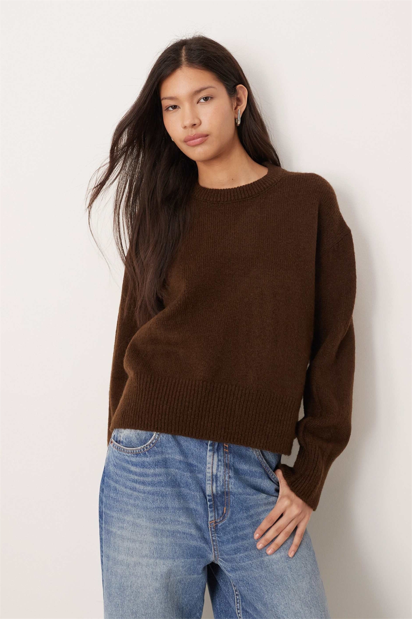 Свободный свитер с круглым вырезом и разрезами по бокам
