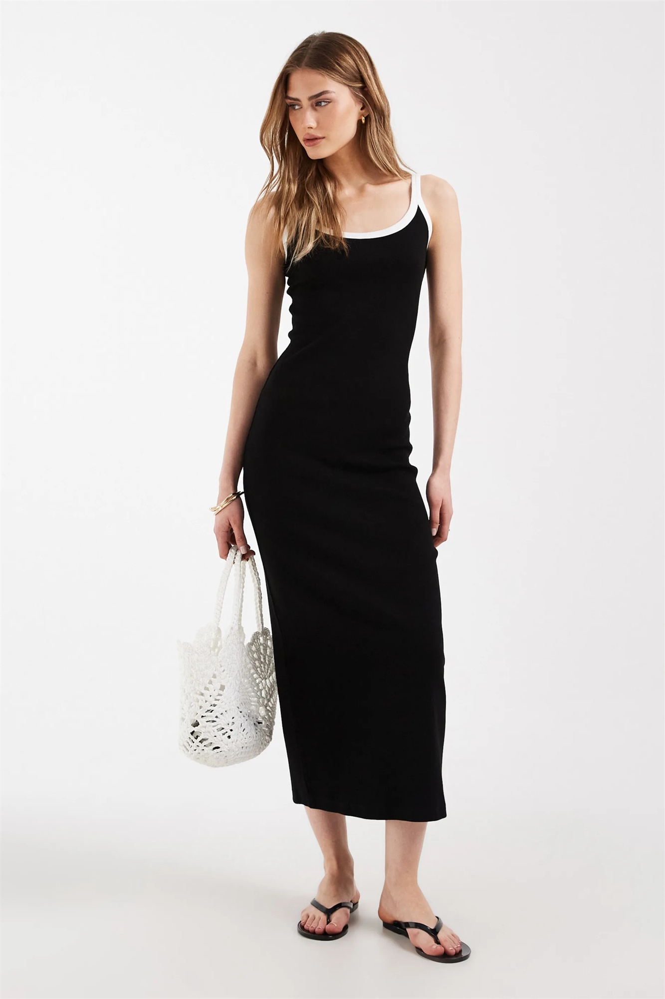 Платье средней длины с контрастной ребристой отделкой