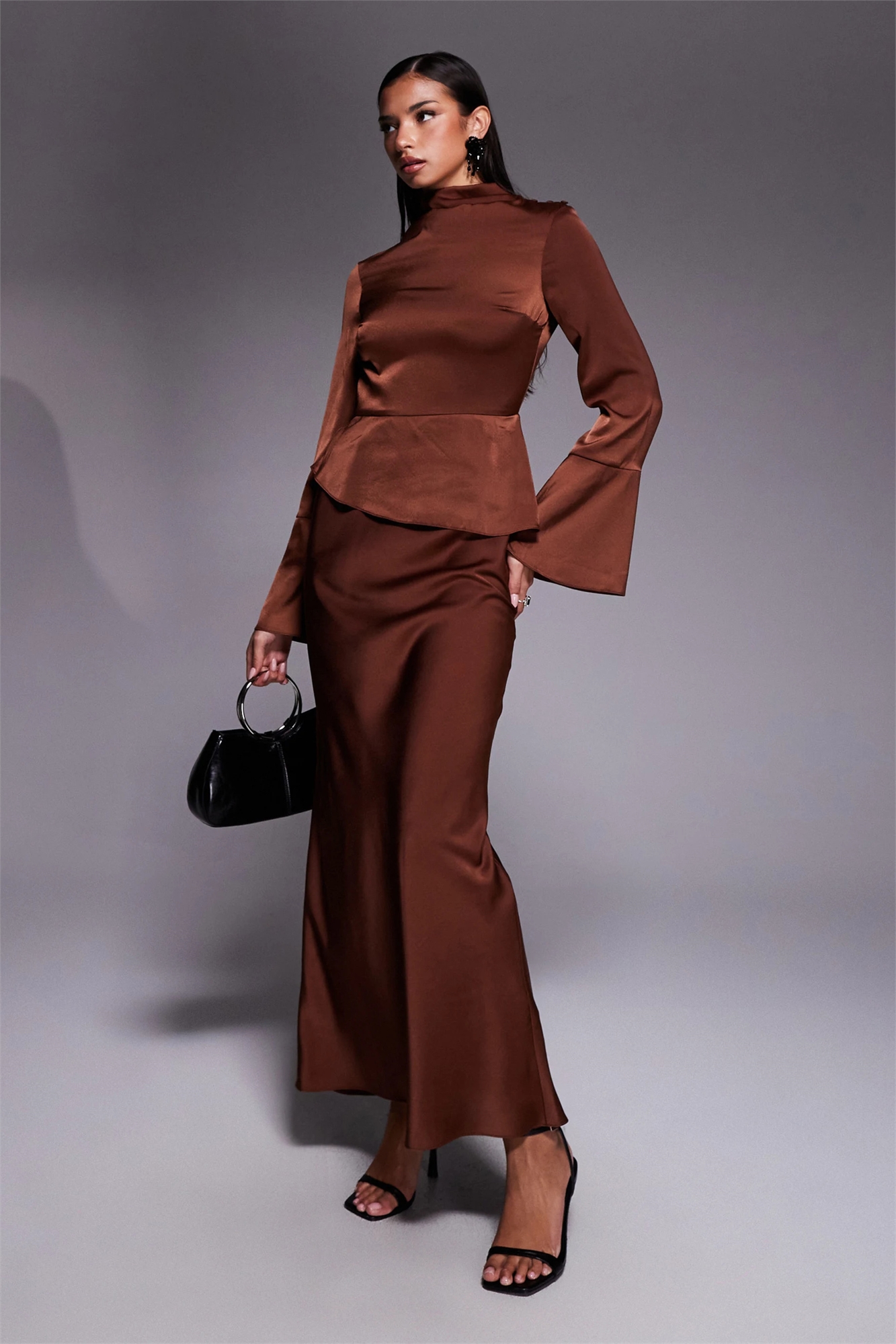 Макси-платье с пеплумом и рукавами-реглан