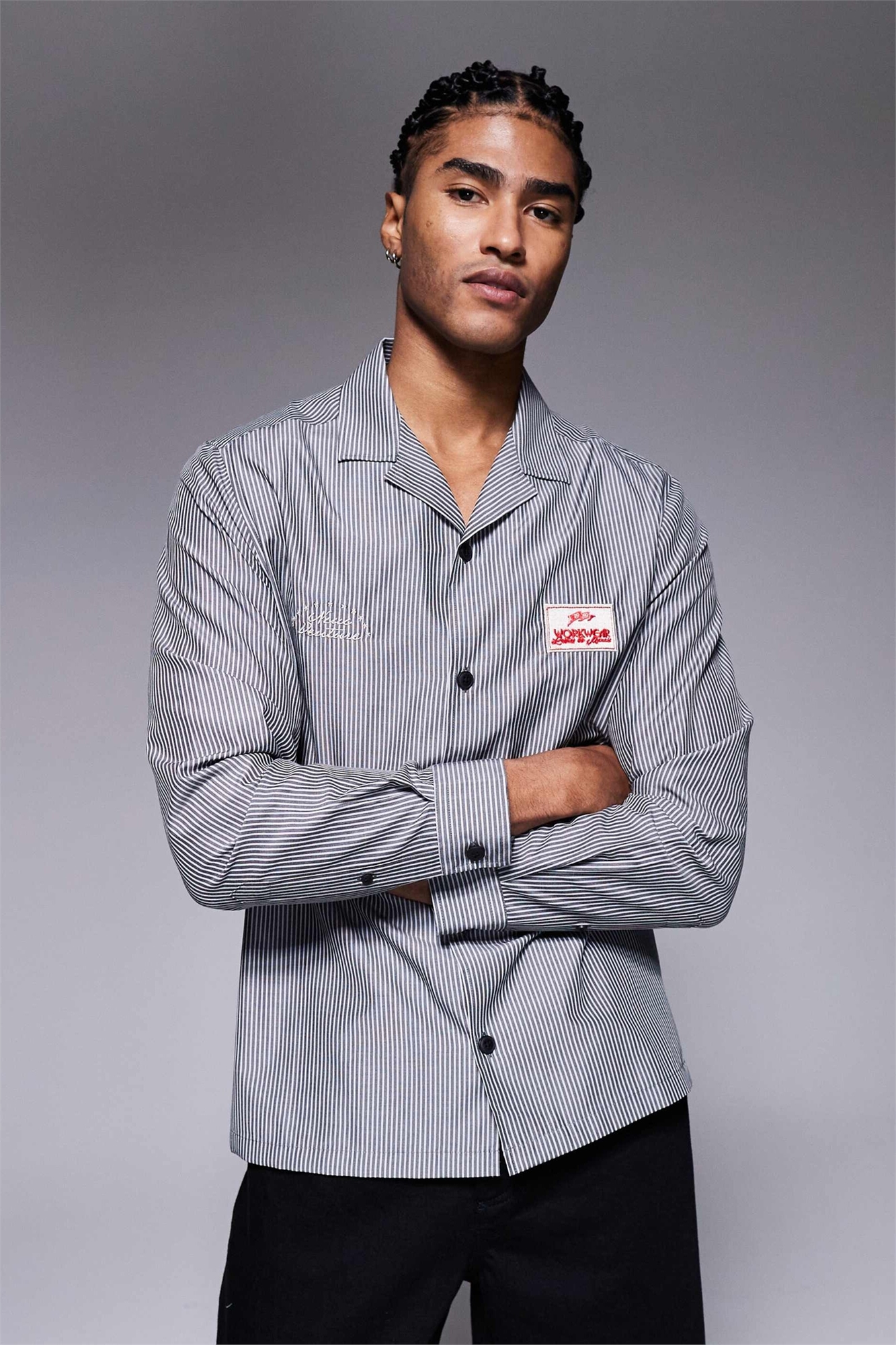 Рубашка свободного кроя с полосками и вышивкой