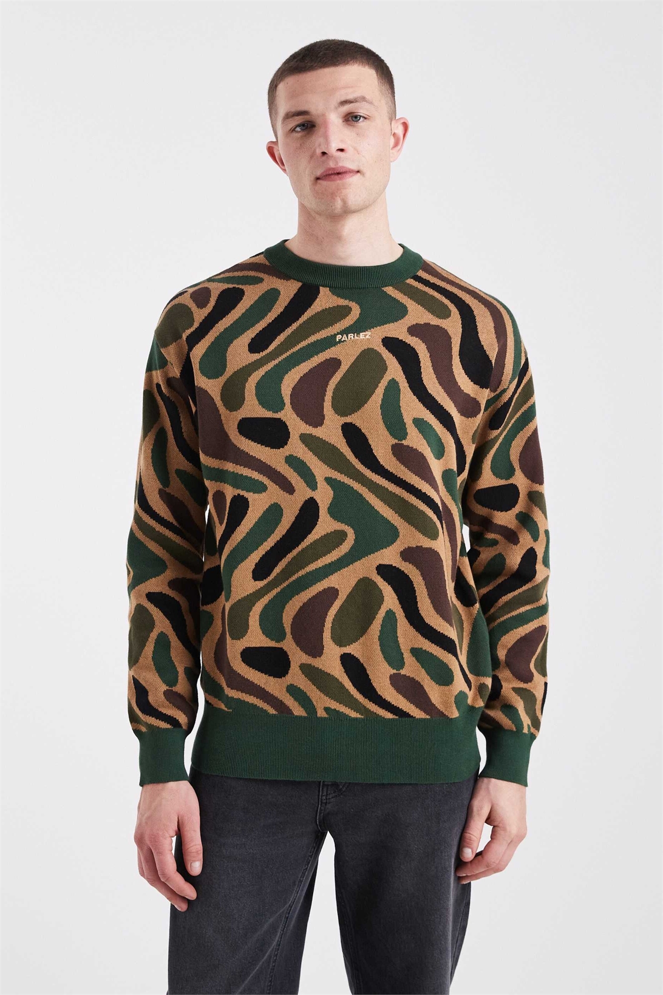 Свитер из трикотажа с камуфляжным принтом по всей поверхности