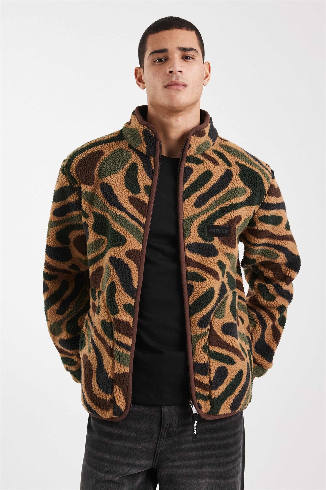 Флисовая кофта с капюшоном и молнией по всей длине, с камуфляжным принтом