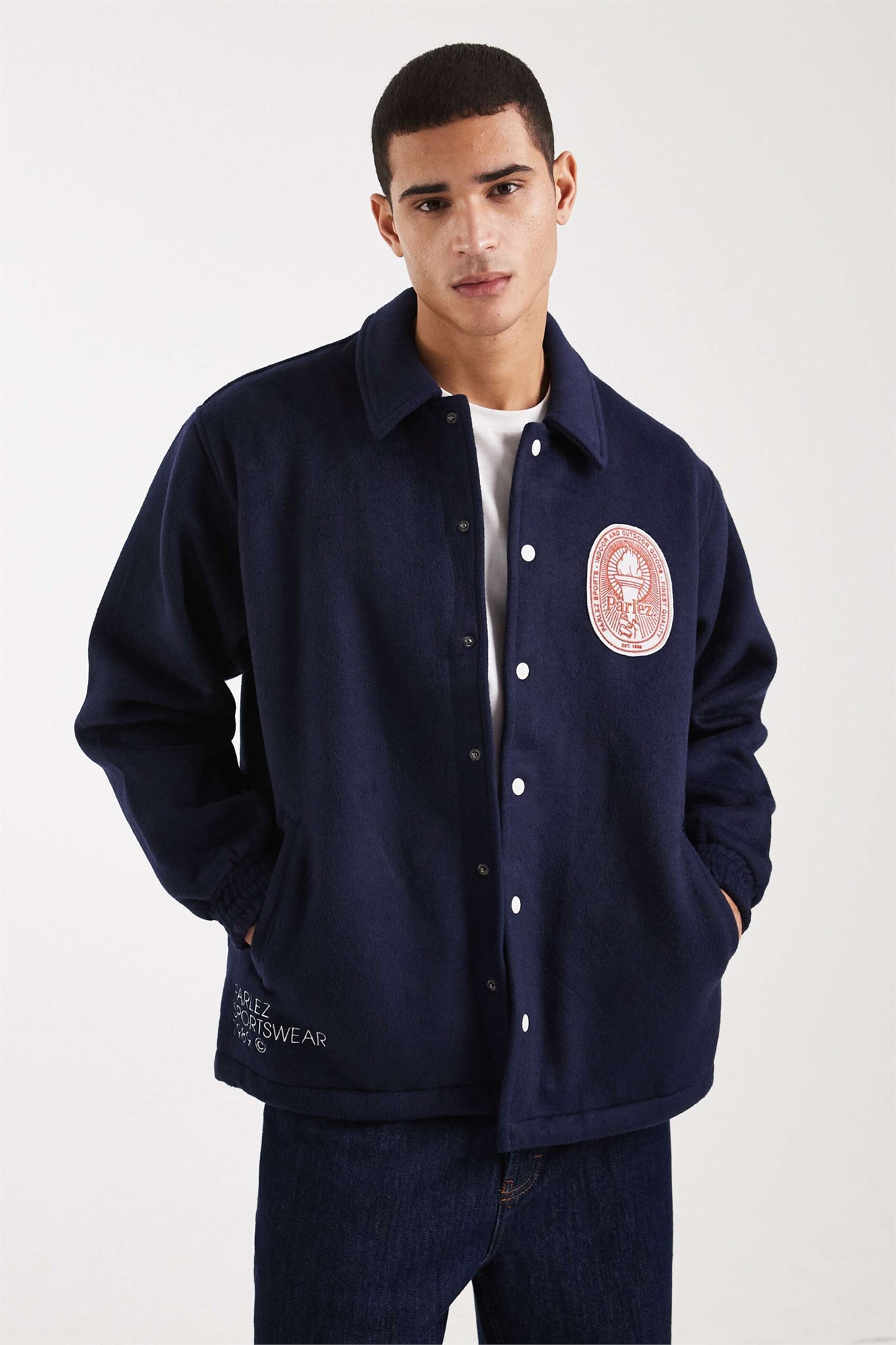 Куртка-коуч из плотной шерстяной смеси с вышитым логотипом в виде нашивки