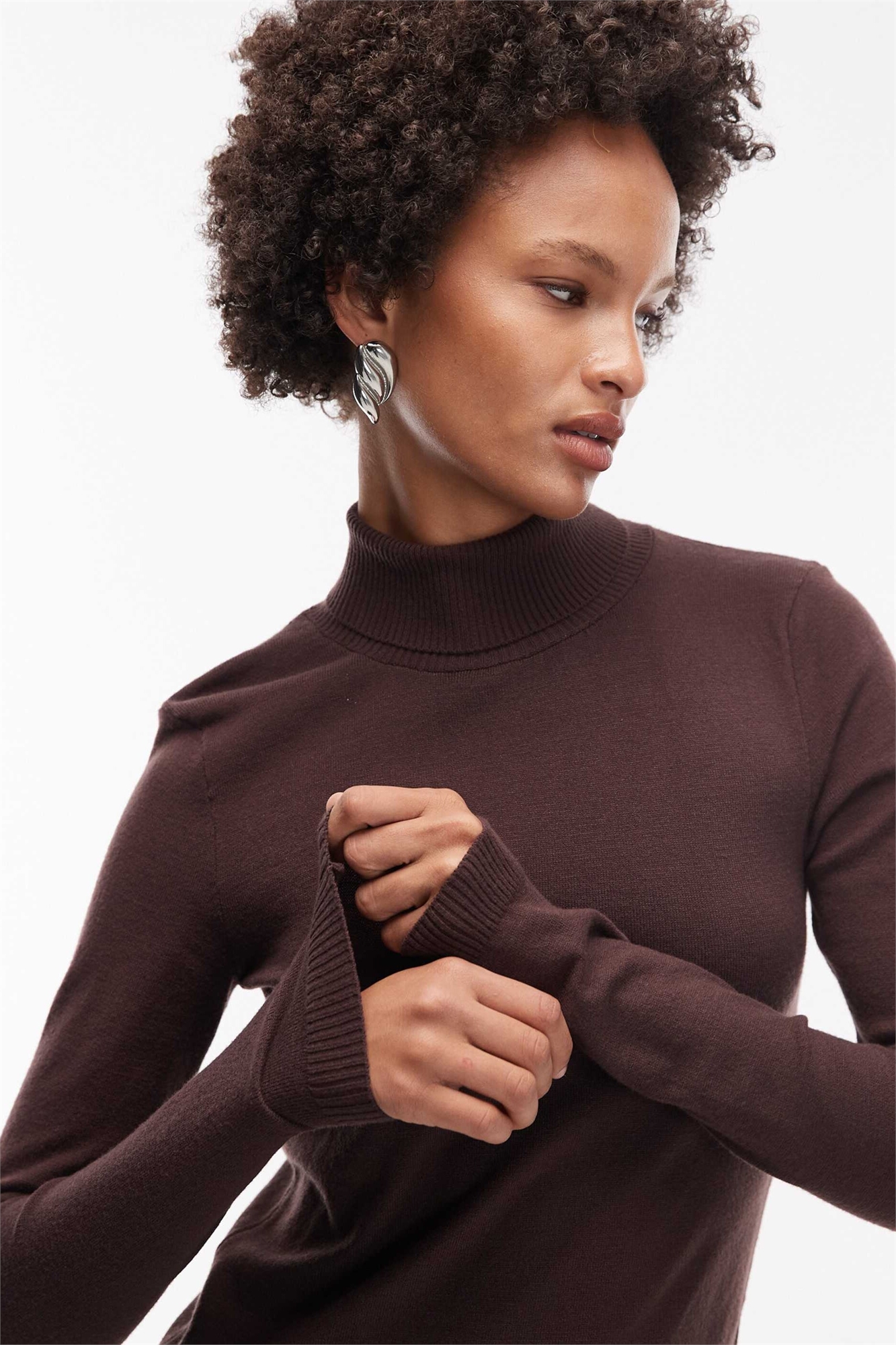 Свитер с высоким воротником из тонкого трикотажа