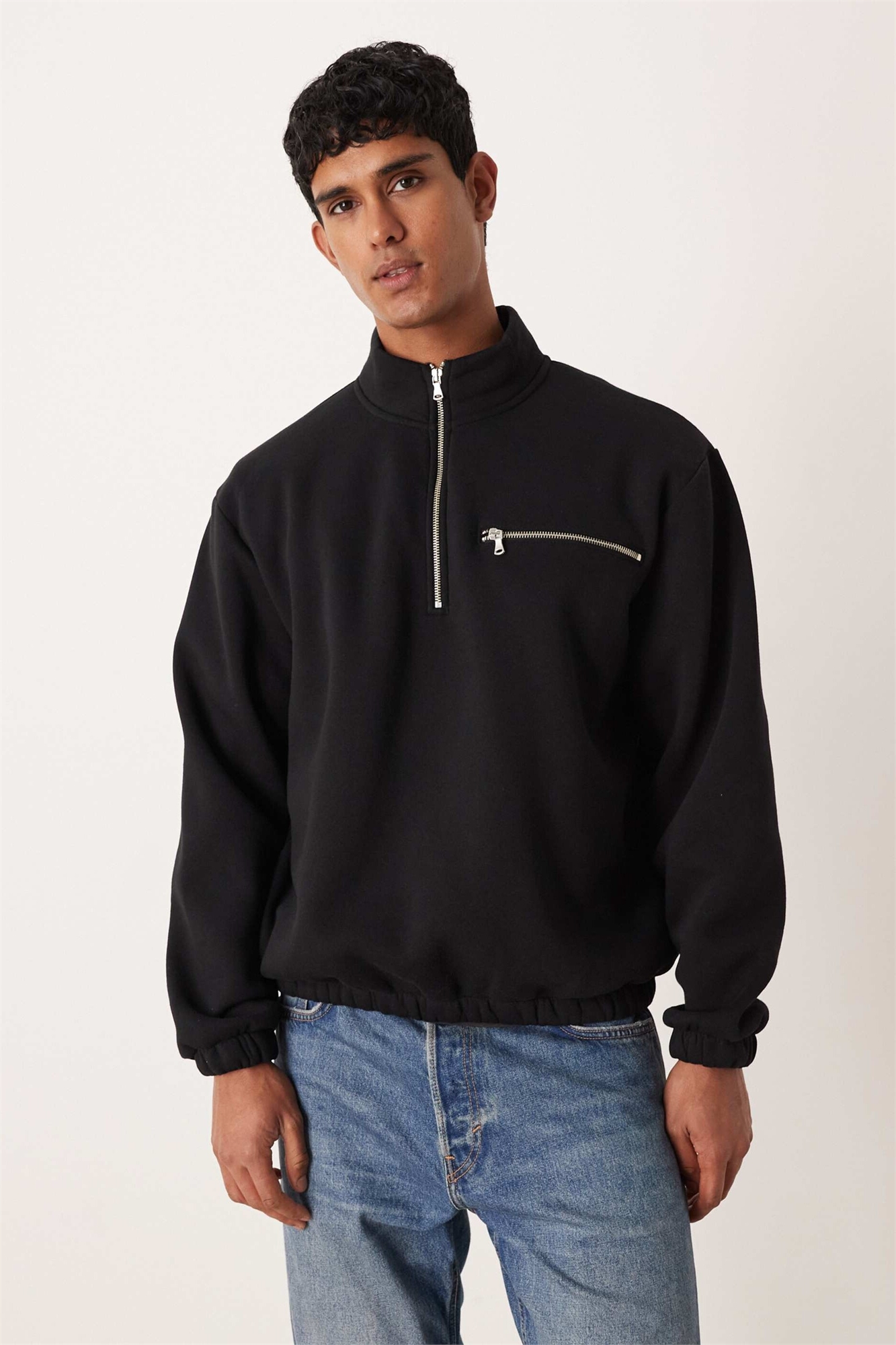 Свитшот с четвертью молнии и свободным кроем