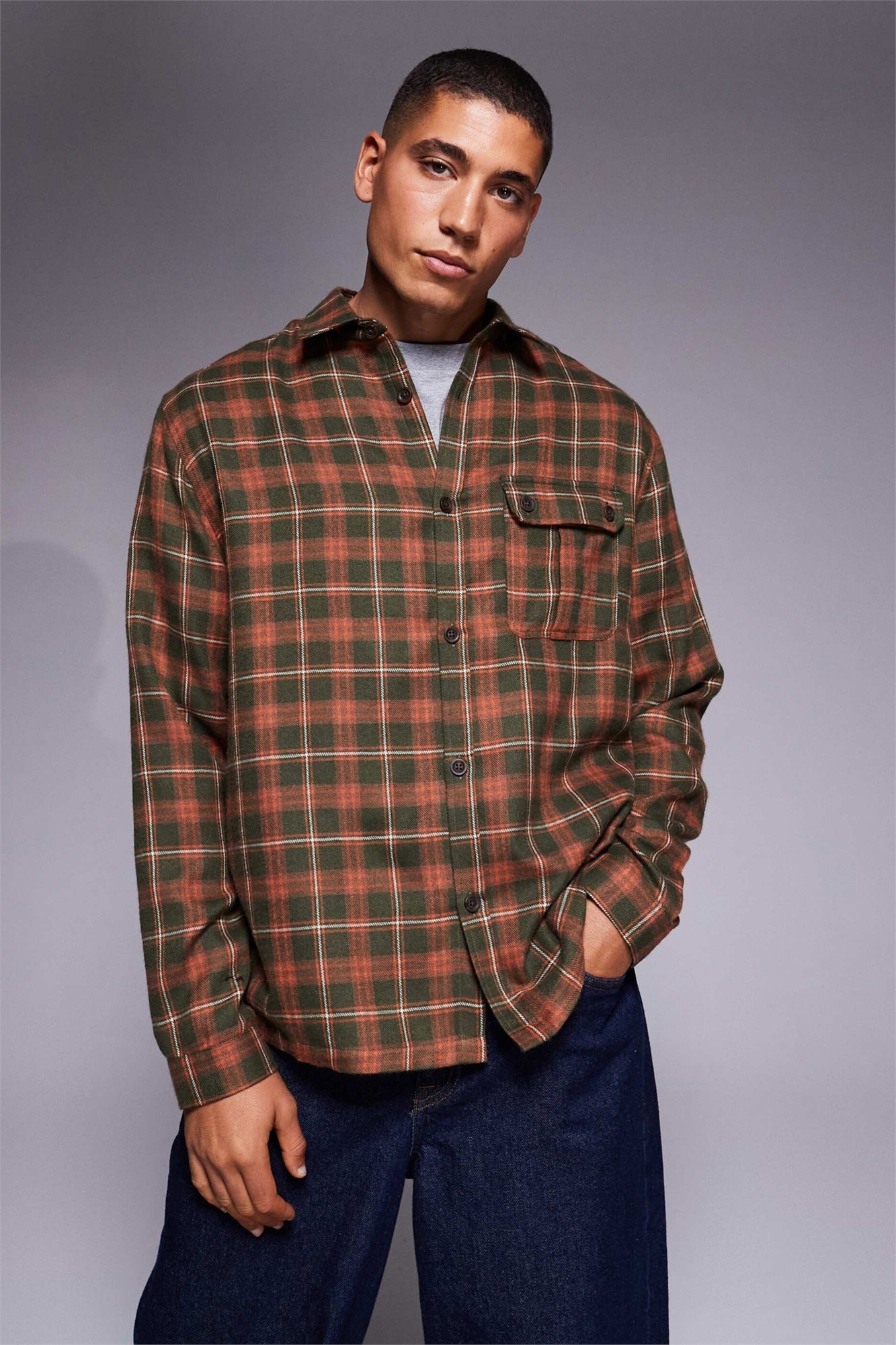 Рубашка свободного кроя в клетку с накладным карманом