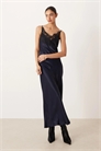 Макси-платье из атласа с кружевным лифом и бретелями