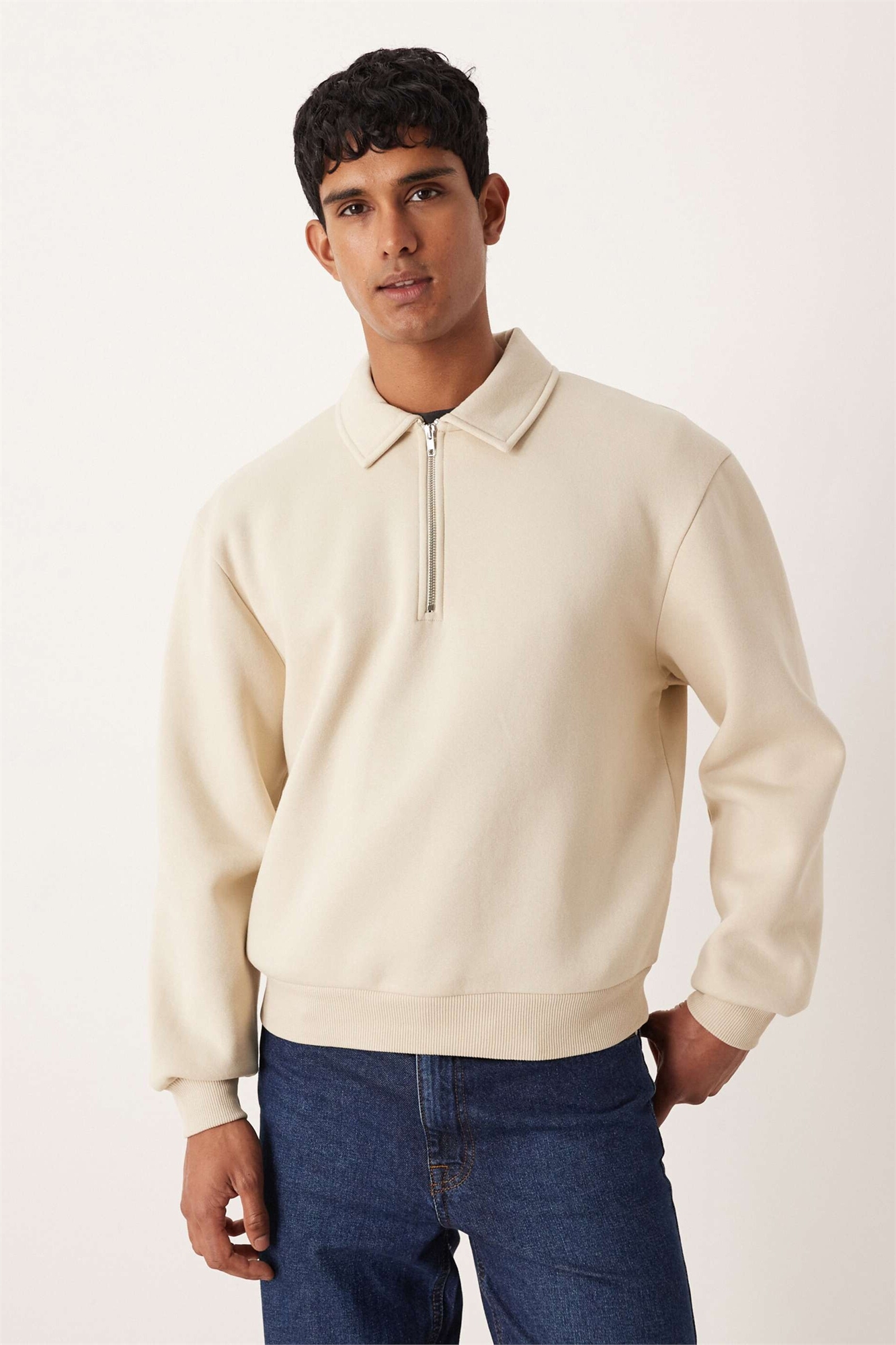 Свободная толстовка прямого кроя с воротником на молнии