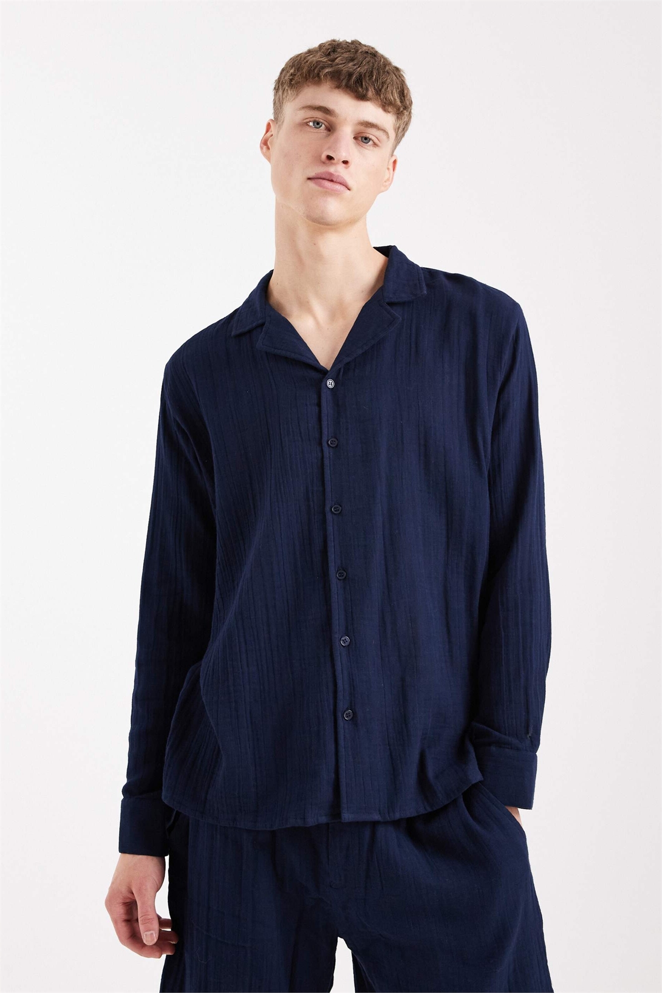 Пляжная рубашка с длинными рукавами и узором «вафелька» co-ord
