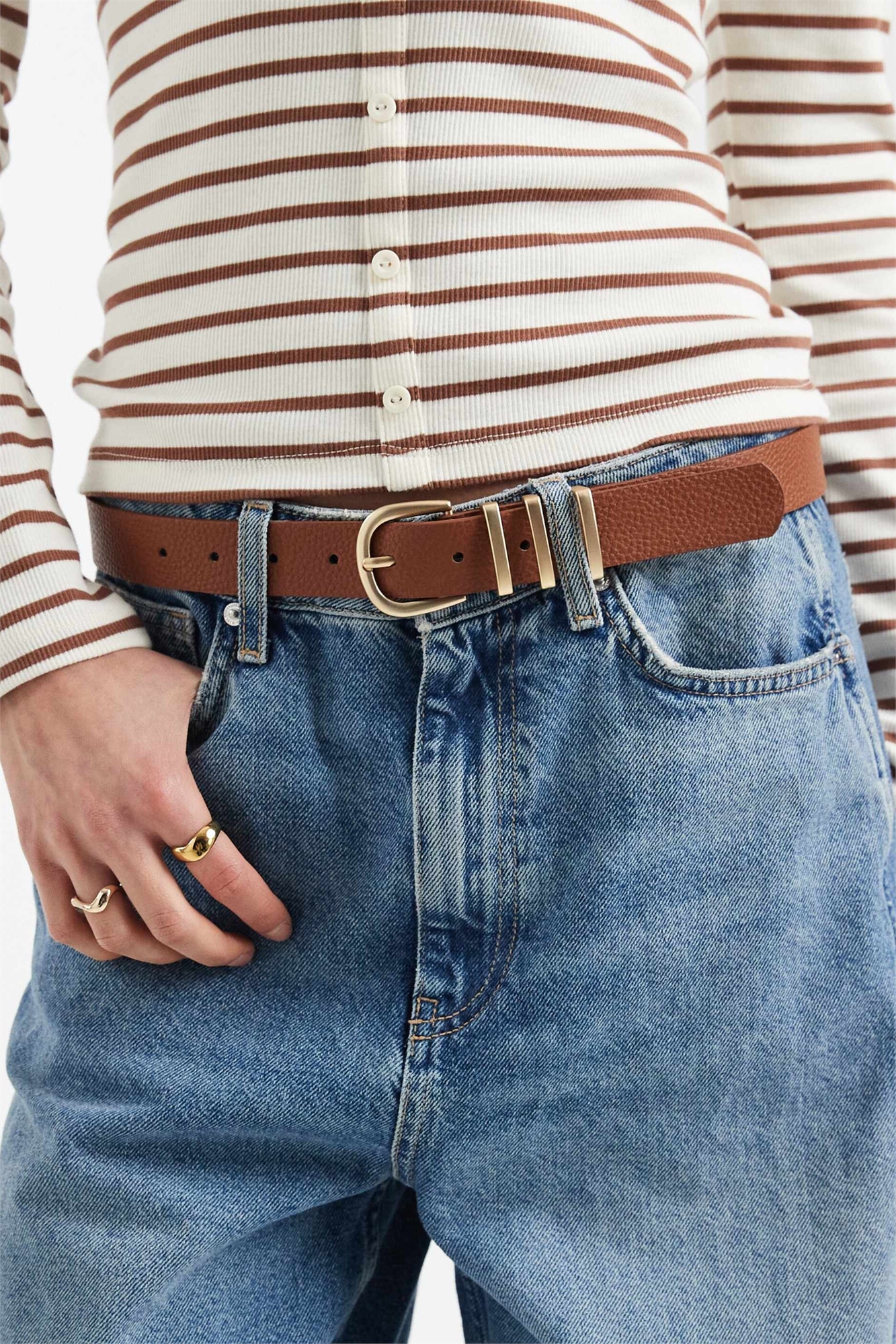 Ремень с пряжкой, украшенной золотыми элементами