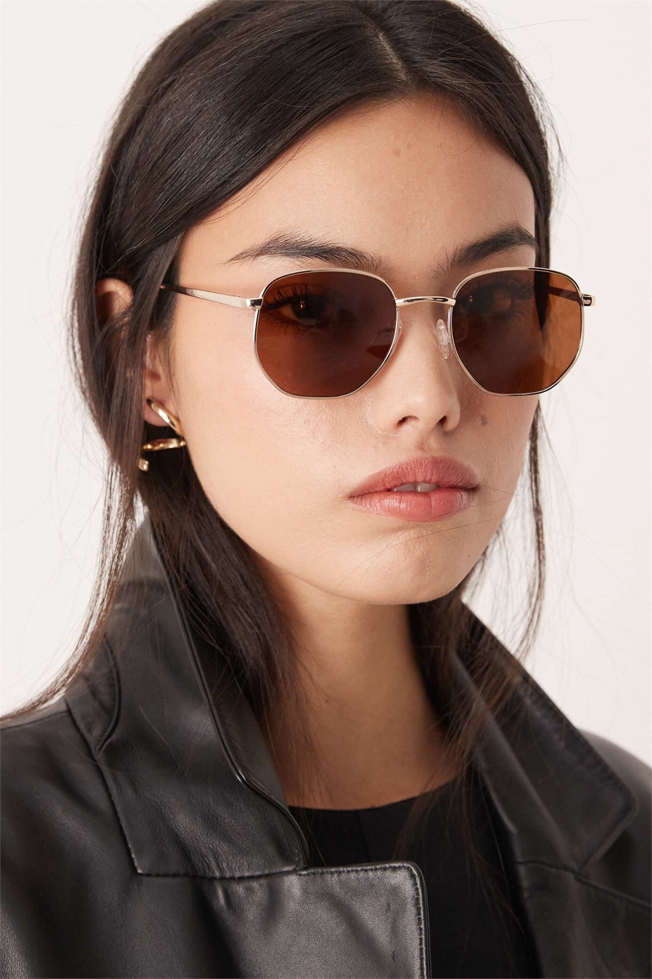 Солнцезащитные очки с поляризованными линзами в металлической оправе шестиугольной формы