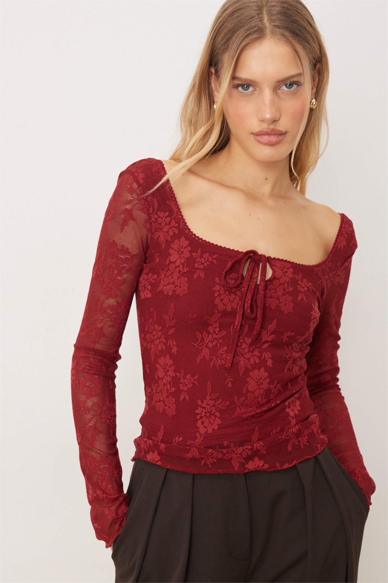 Топ с длинными рукавами и завязками спереди из жаккардовой ткани с цветочным узором