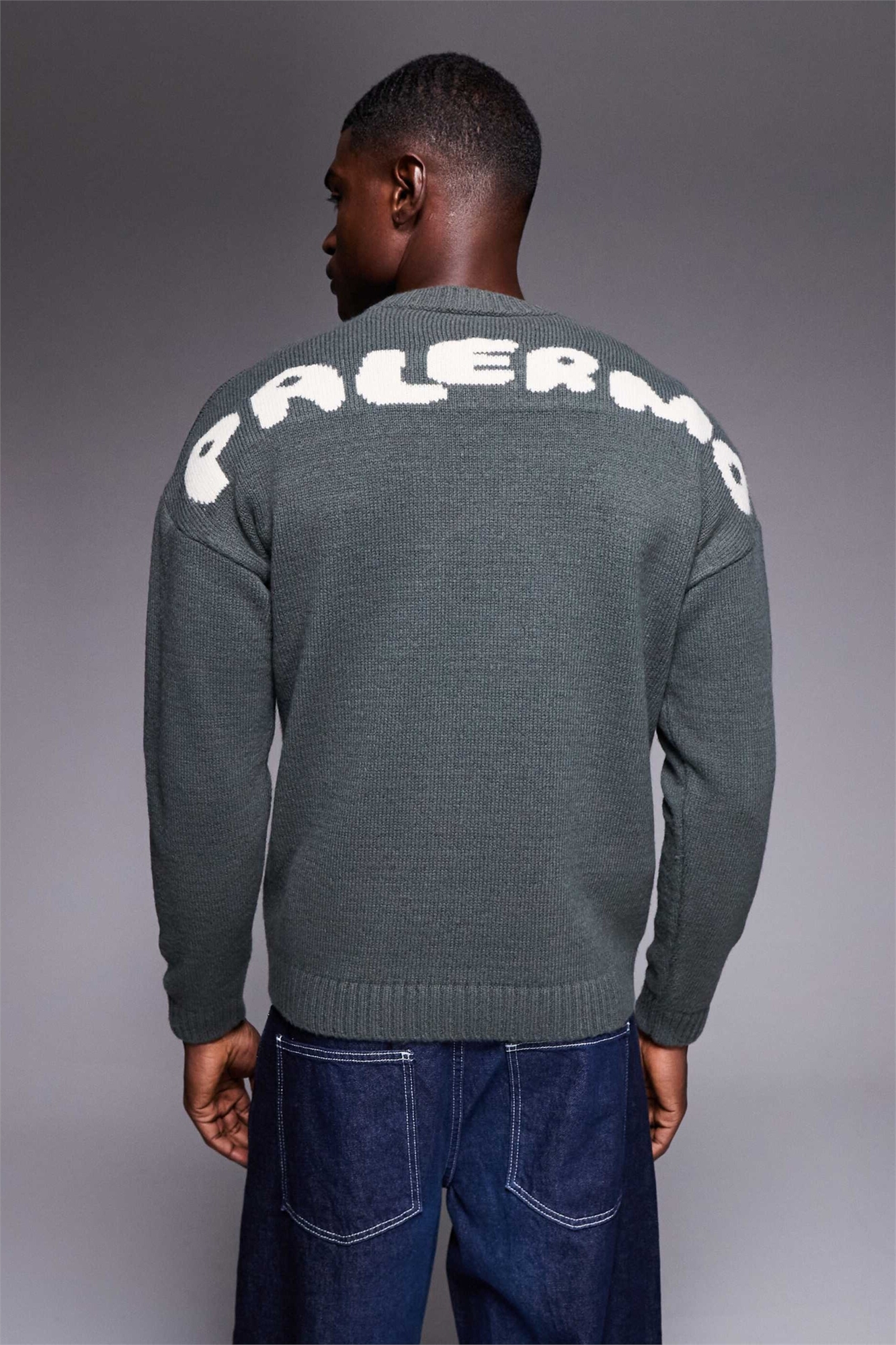 Свитер свободного кроя с круглым вырезом и принтом «Палермо» на спине