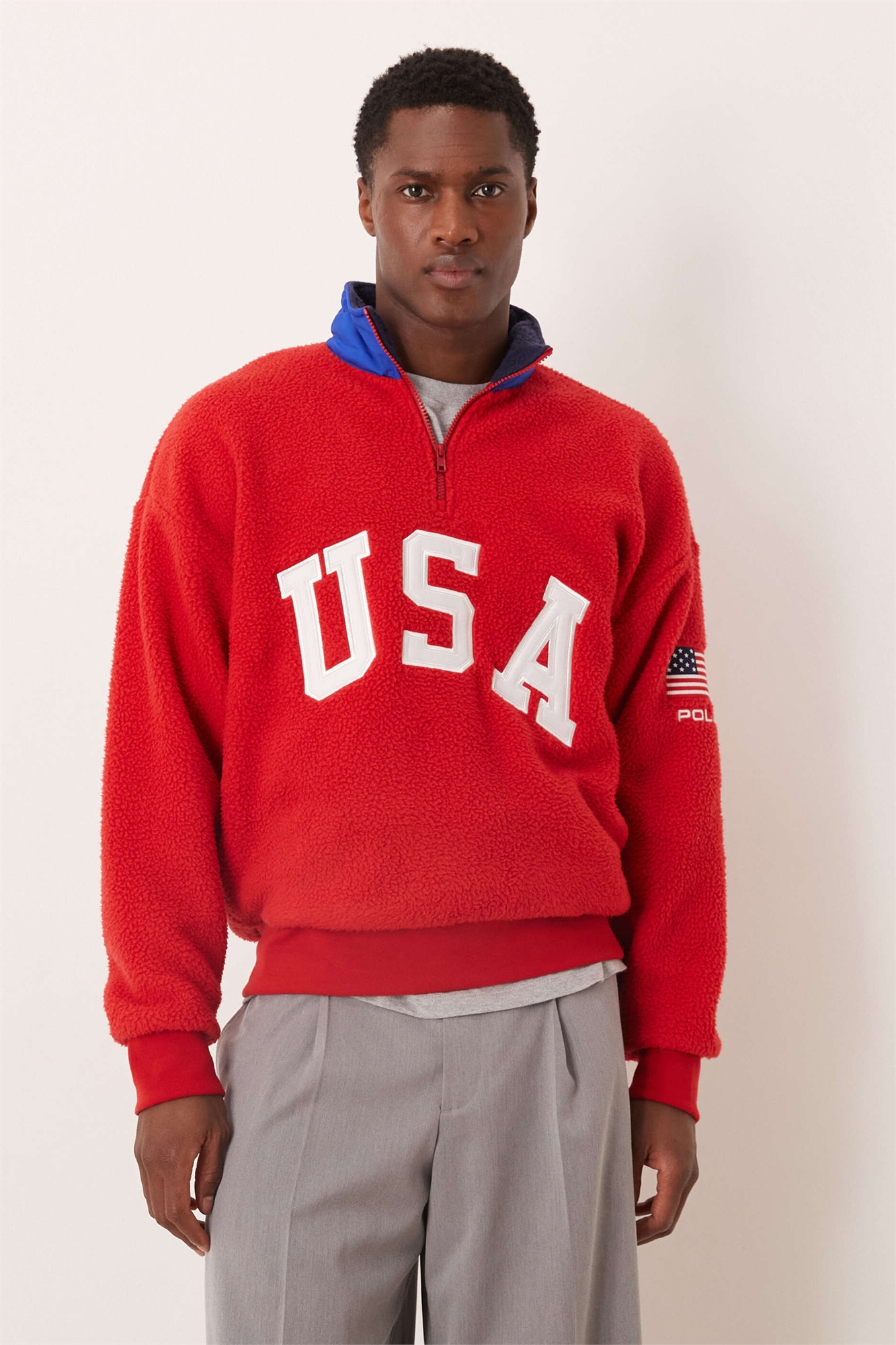 Универсальная кофта из флиса с логотипом на груди и полузастежкой-молнией от сборной США