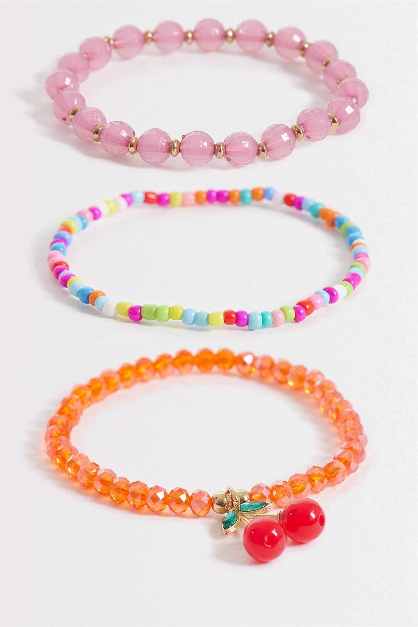 Браслеты с вишневыми подвесками из бисера, состоящие из 3 слоёв