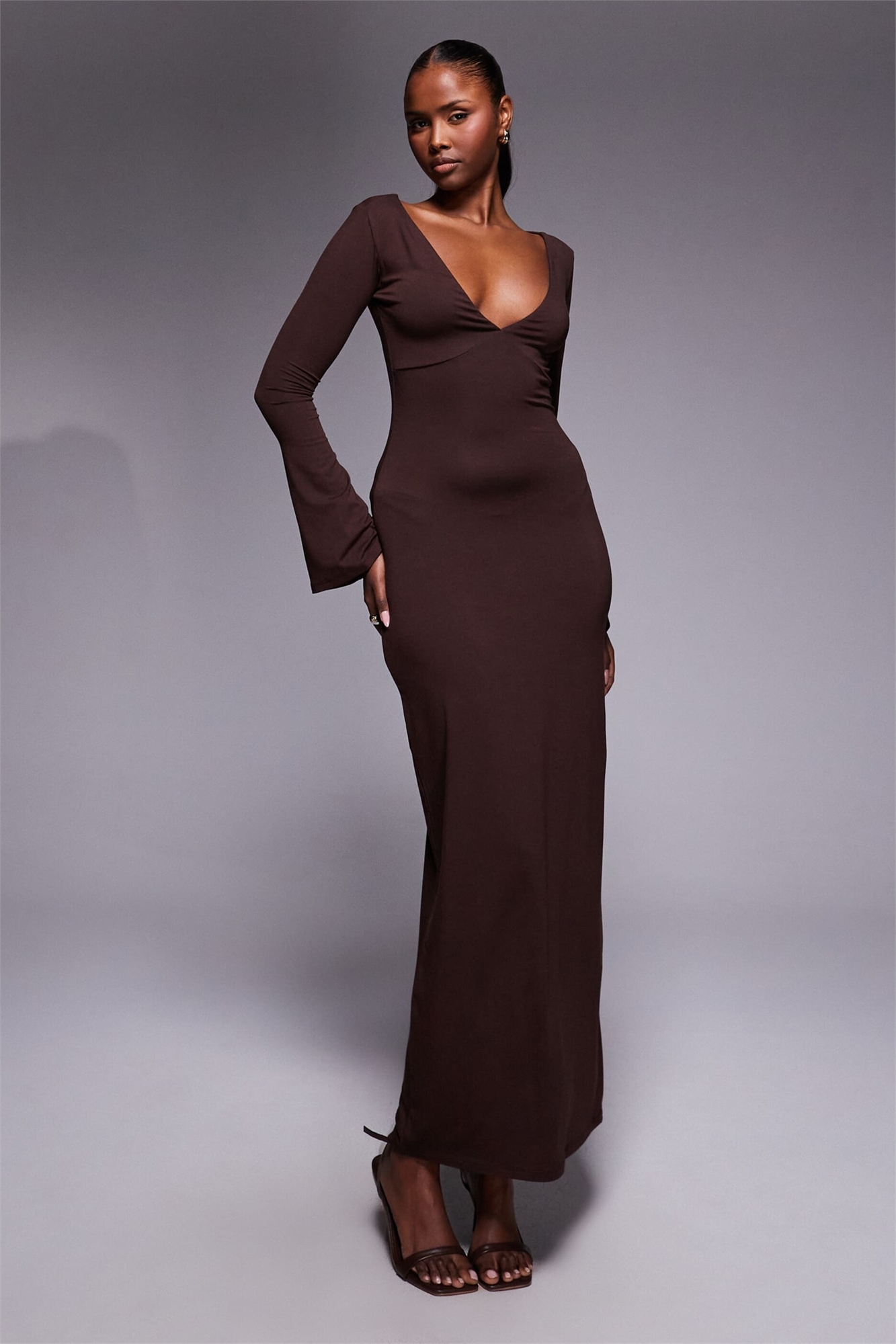 Макси-платье с длинными рукавами-крыльями и плечами, опускающимися до плеч