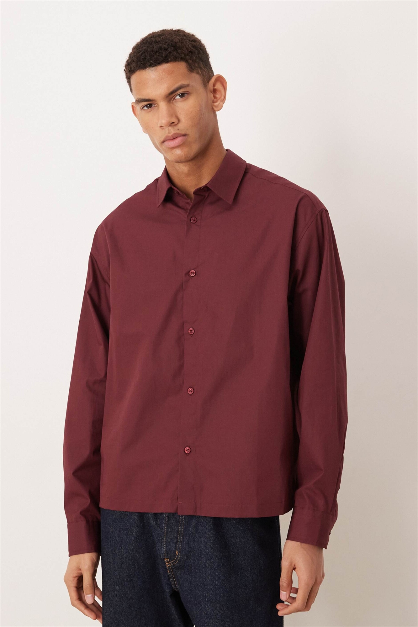 Рубашка из поплина оверсайз прямого кроя бордового цвета