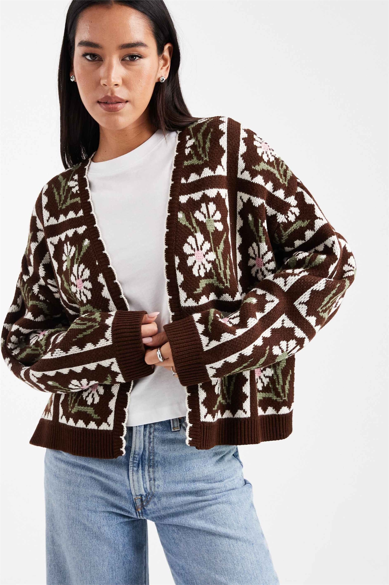 Кардиган с цветочным узором из трикотажа