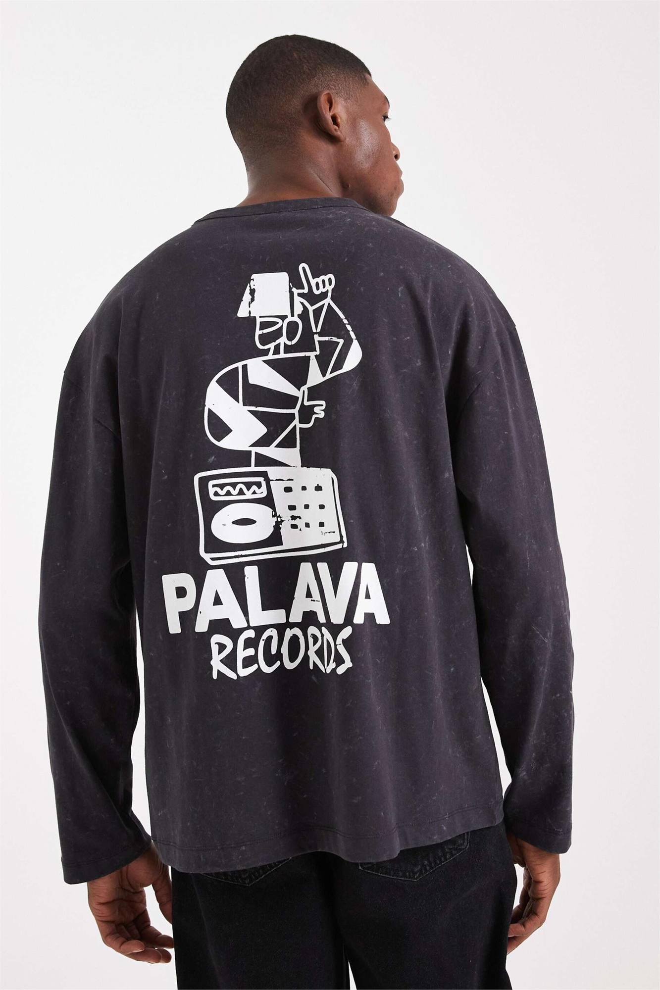 Футболка свободного кроя с длинными рукавами и принтом на спине