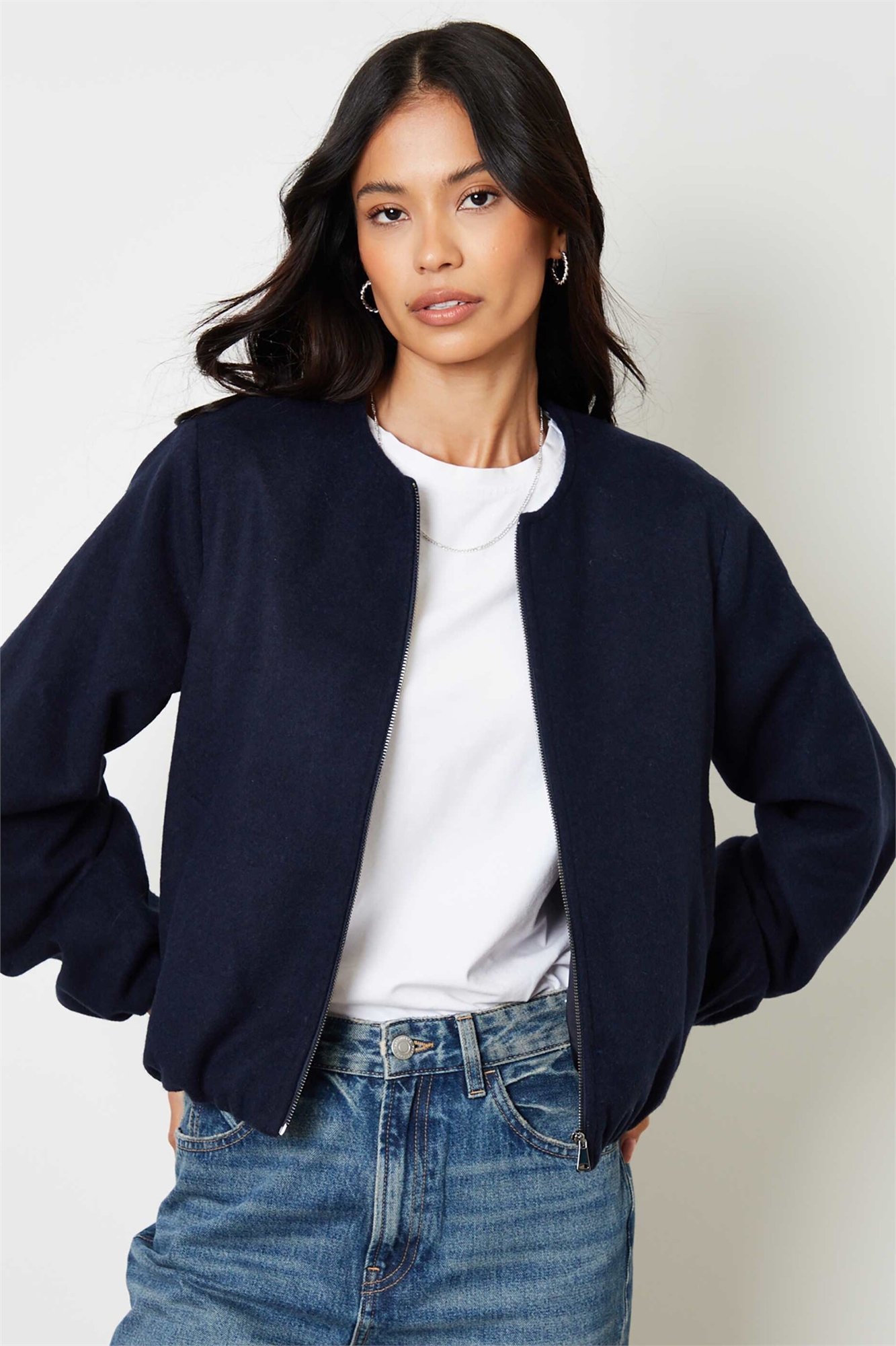 Бомбер с матовой отделкой и балонным подолом, темно-синий