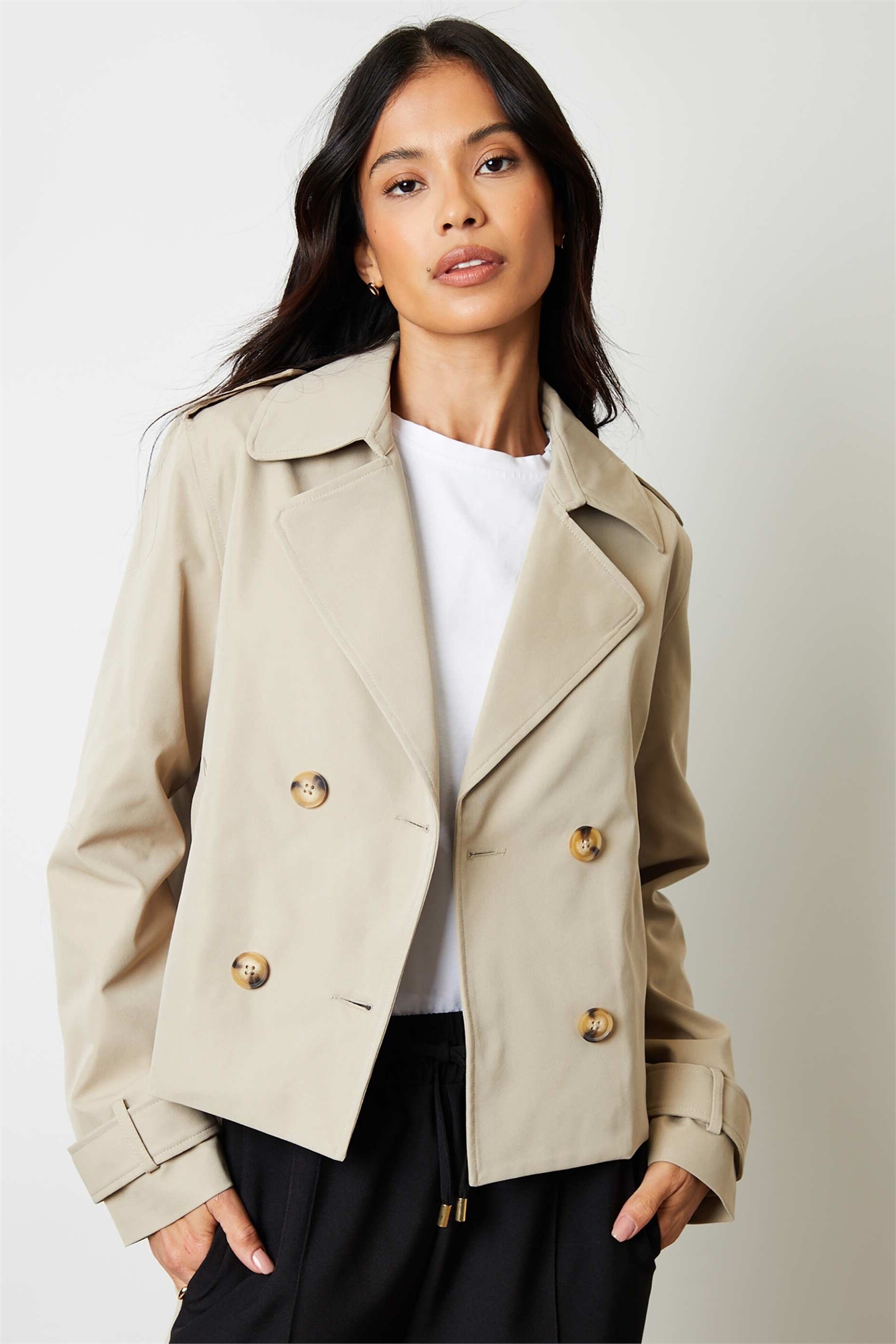 Укороченный тренч с двойной застежкой