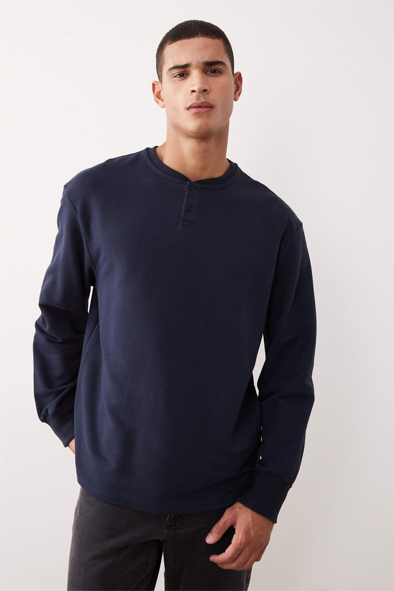 Свитшот с воротником-хенли свободного кроя