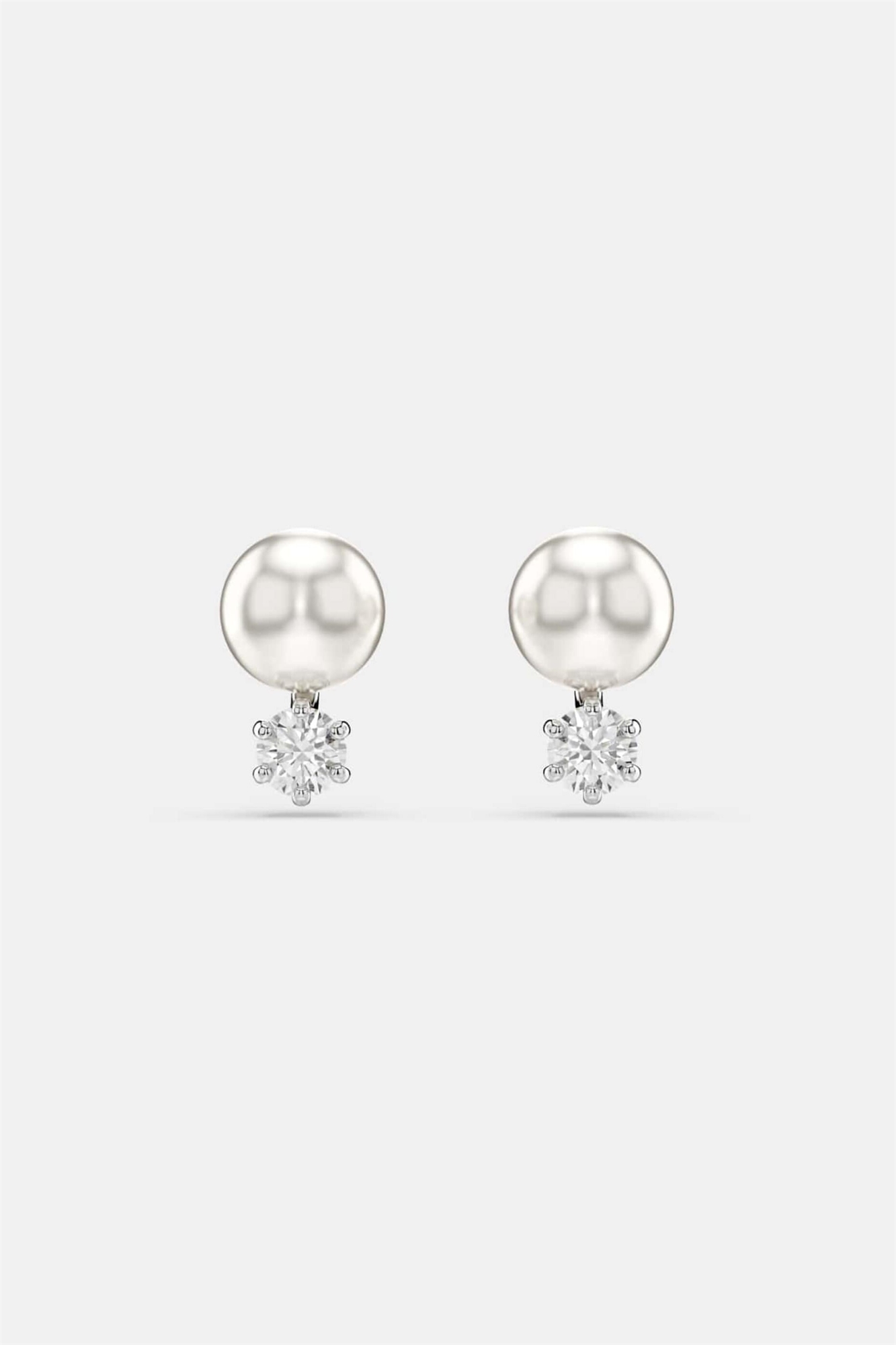 Серьги-гвоздики «Матрица», кристалл-жемчужина, круглая огранка, белые, с родиевым покрытием