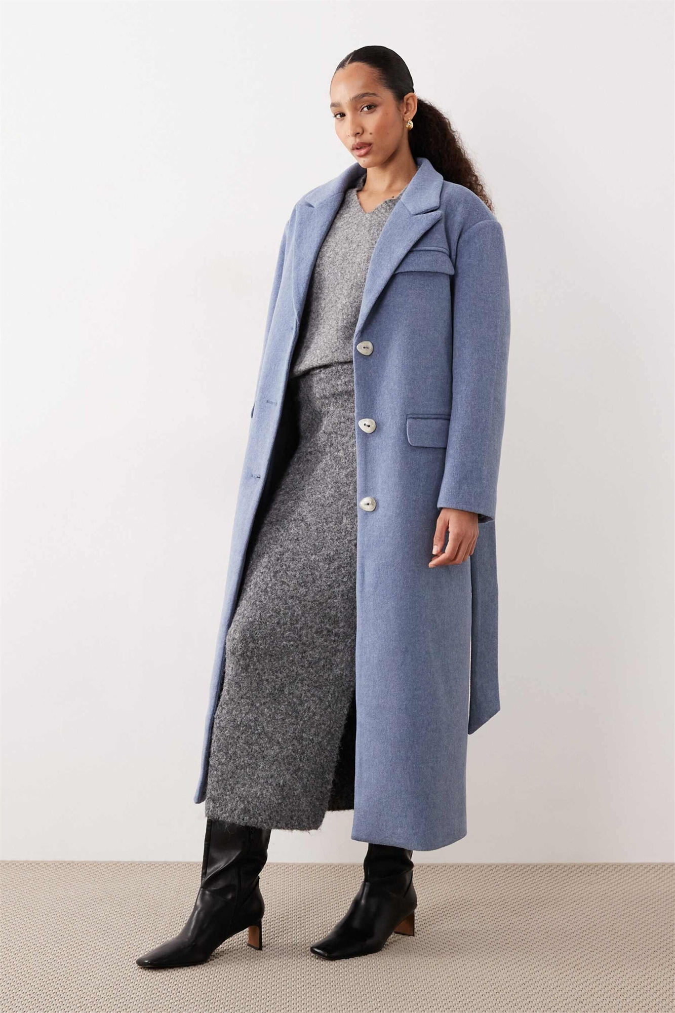 Длинное пальто-блейзер с поясом в стиле «под шерсть»