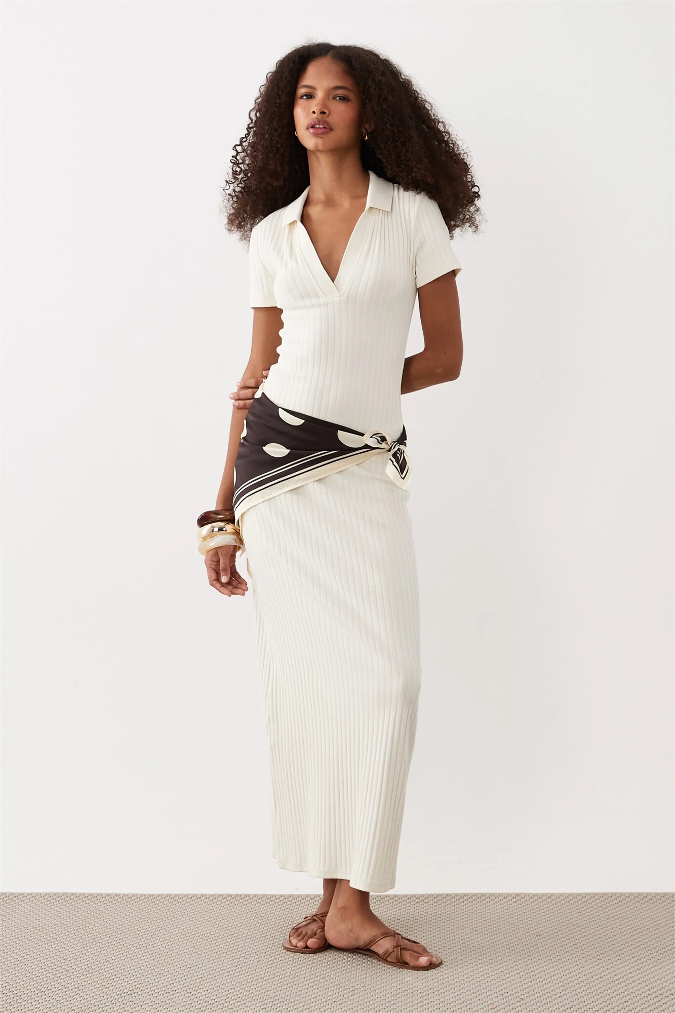 Платье-миди с ребристым поло с короткими рукавами