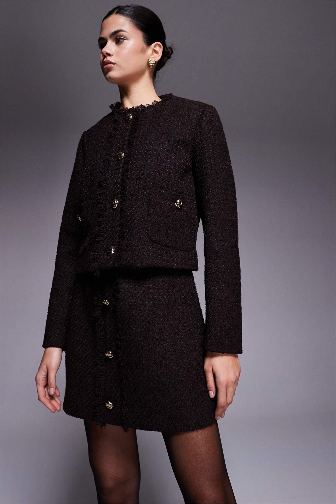 Мини-юбка с пуговицами попереду из букле