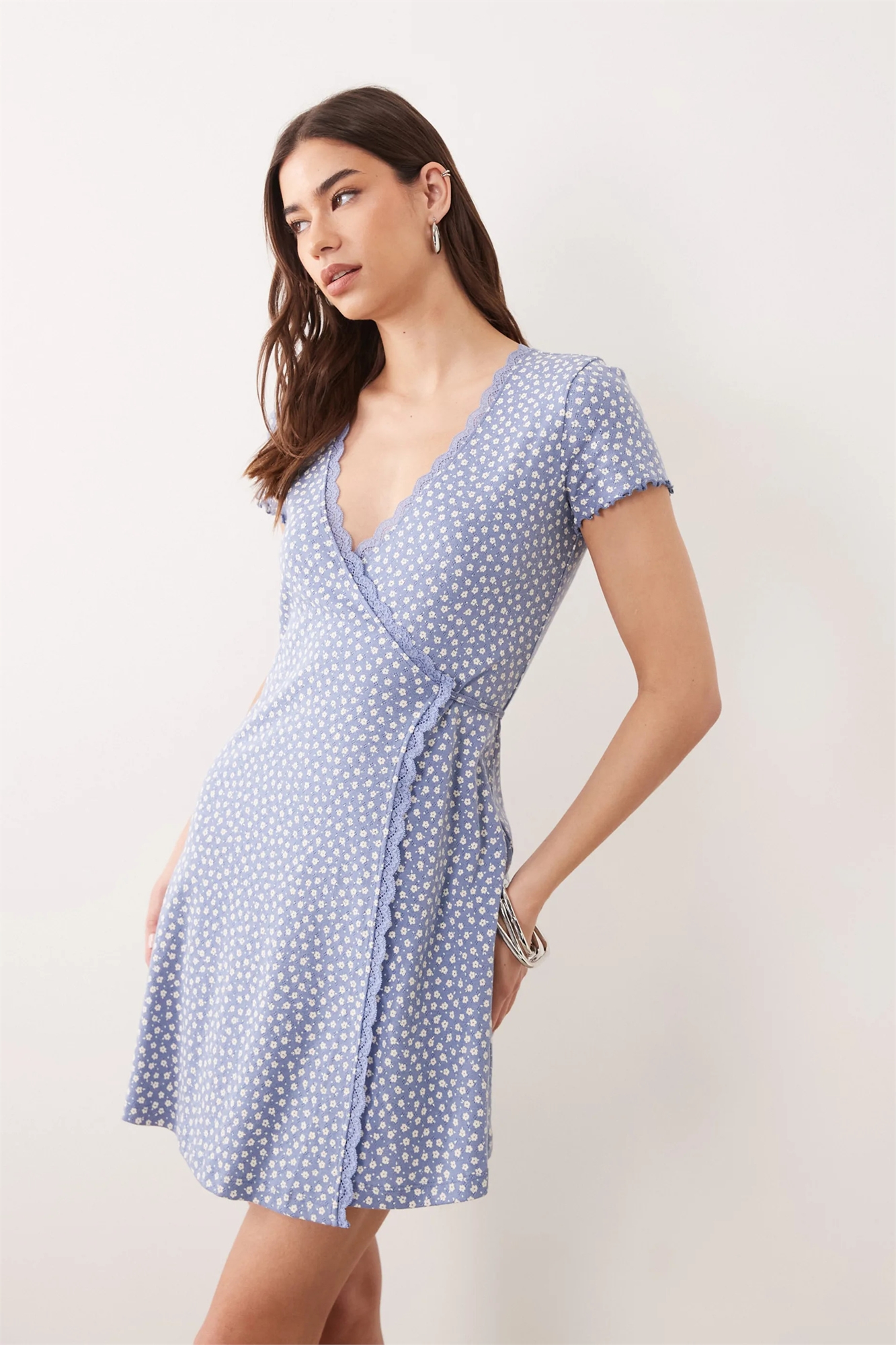 Платье-халат с принтом «дитси» и кружевной отделкой из ажурного трикотажа