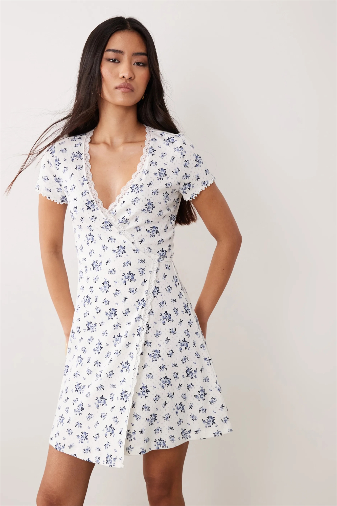 Платье-халат с принтом «дитси» и кружевной отделкой из ажурного кружева