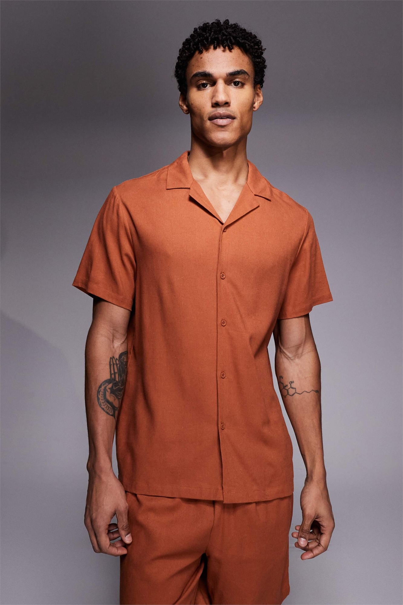 Льняная рубашка с короткими рукавами