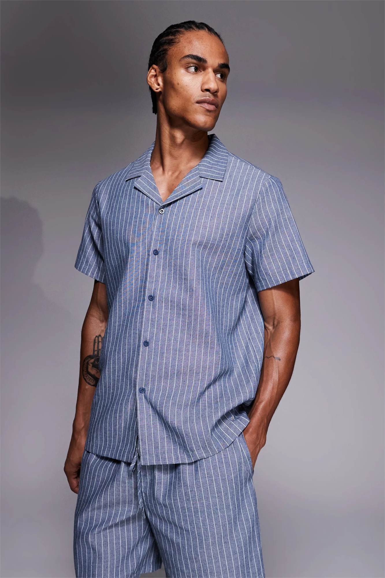 Льняная рубашка с короткими рукавами