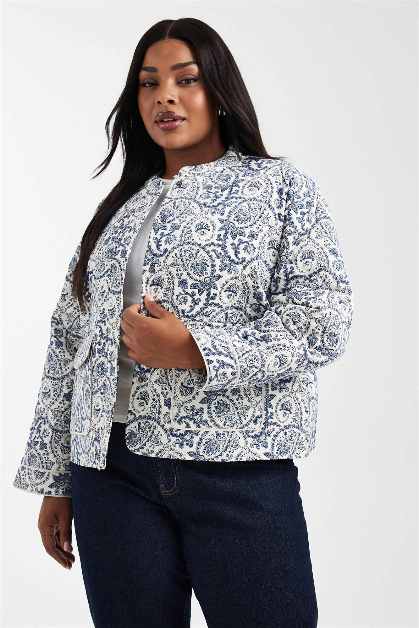 Стеганая куртка с синим жаккардовым принтом