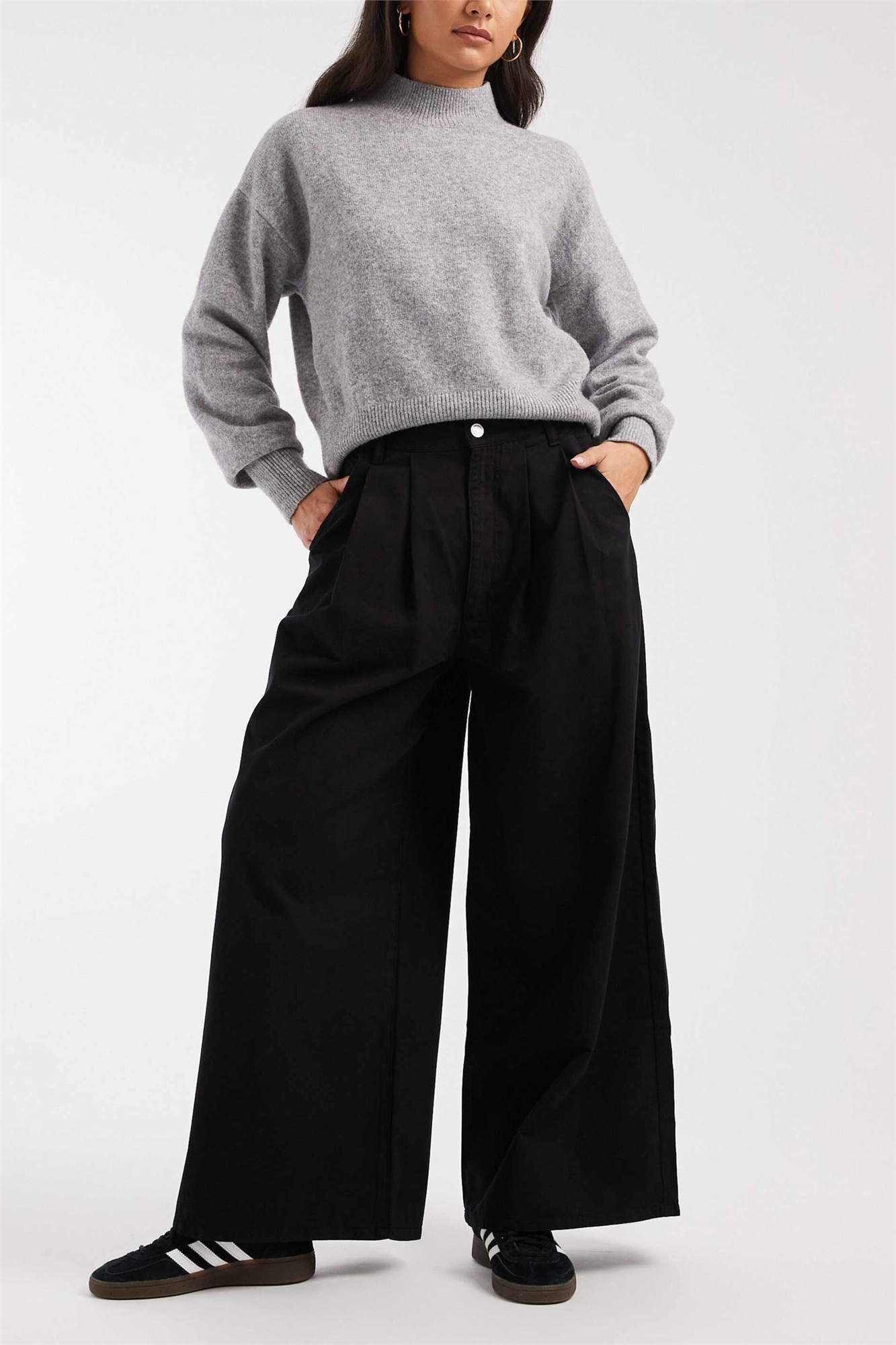 Брюки из бумажно-хлопковой ткани с широкими брючинами и складками
