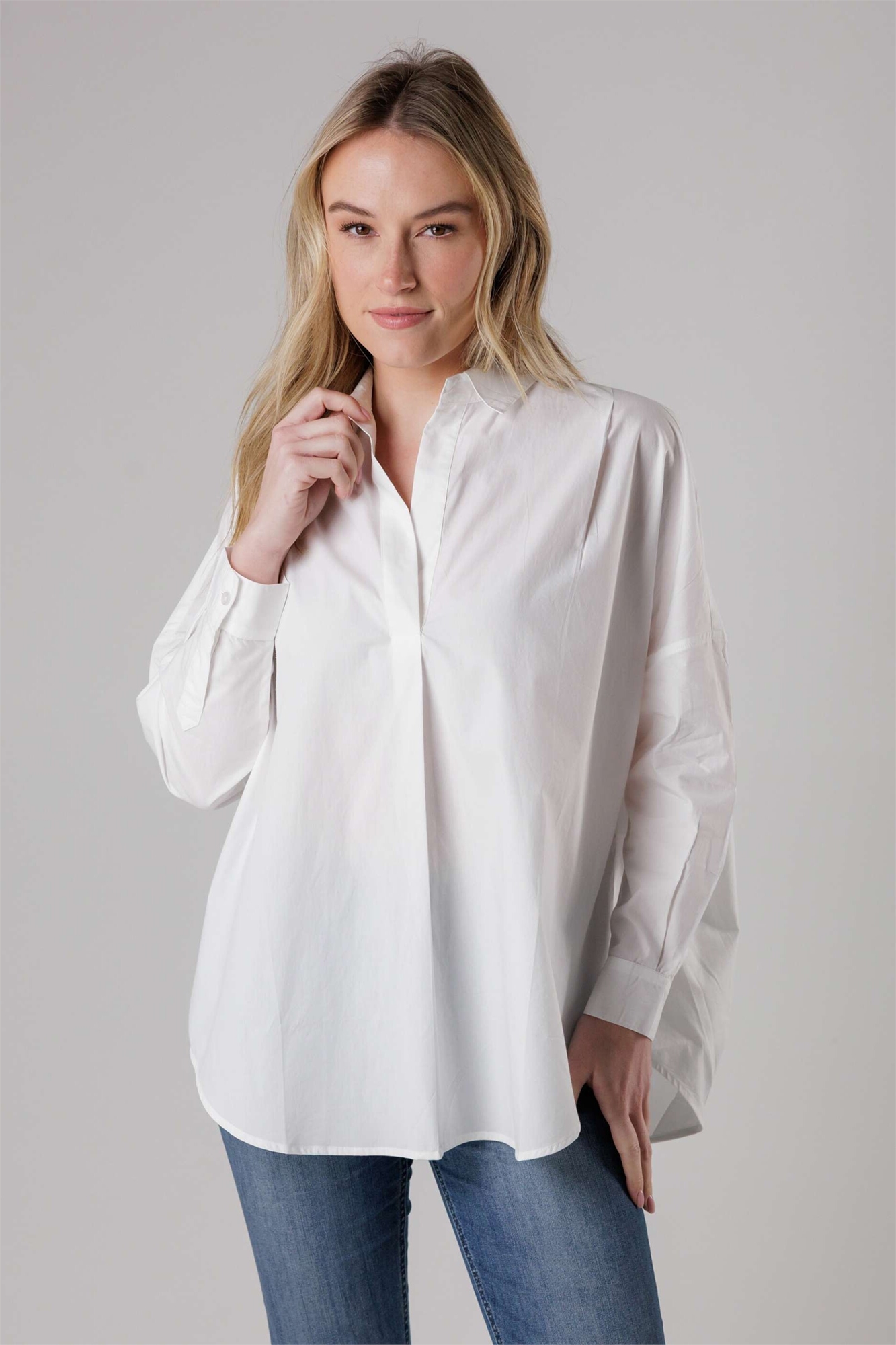 Хлопковая рубашка с длинными рукавами из поплина, с асимметричным подолом