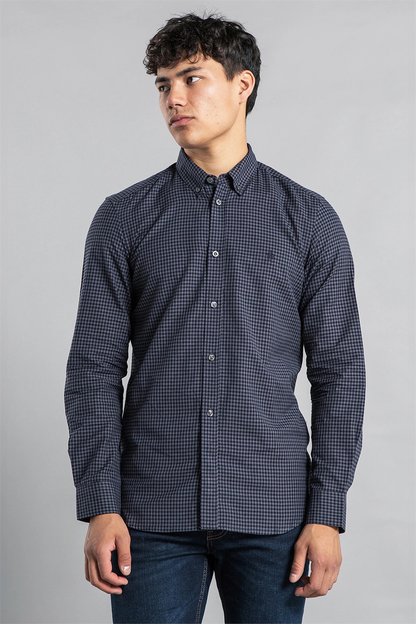 Хлопковая рубашка в клетку с длинными рукавами