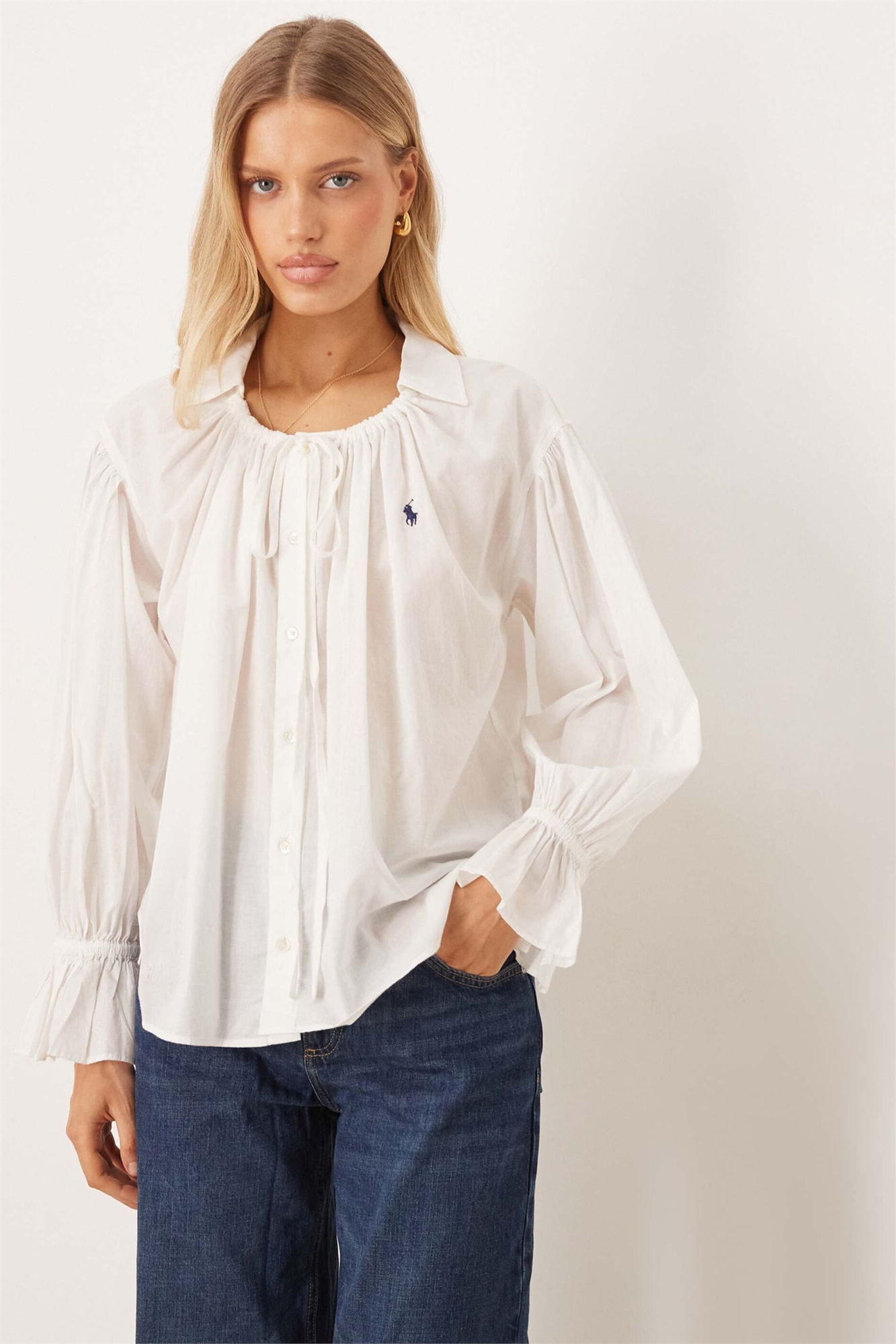 Блузка с логотипом в стиле бохо и оборками