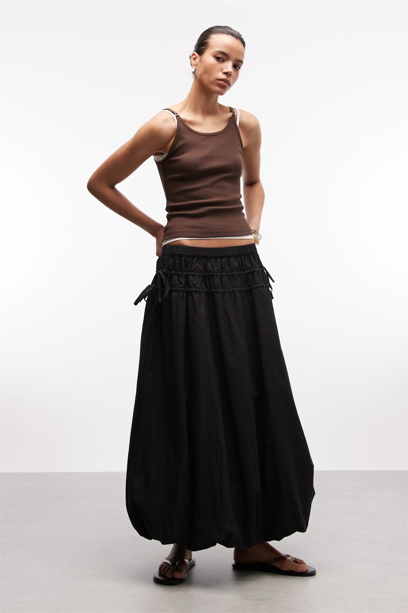 Юбка-балончик средней длины с завязками по бокам