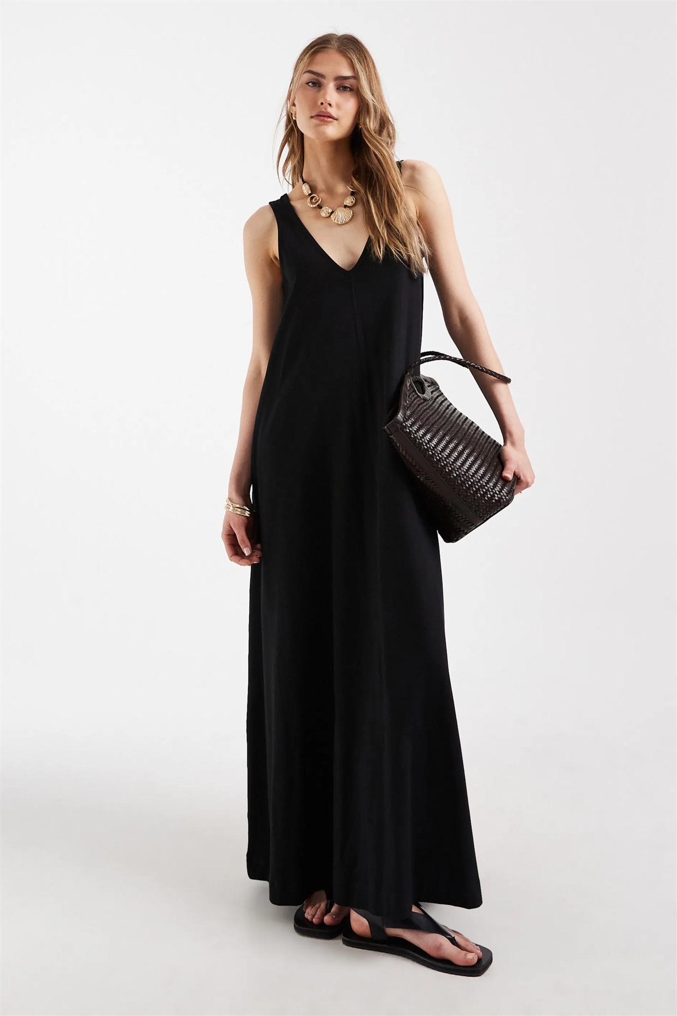 Макси-платье с трапециевидным силуэтом
