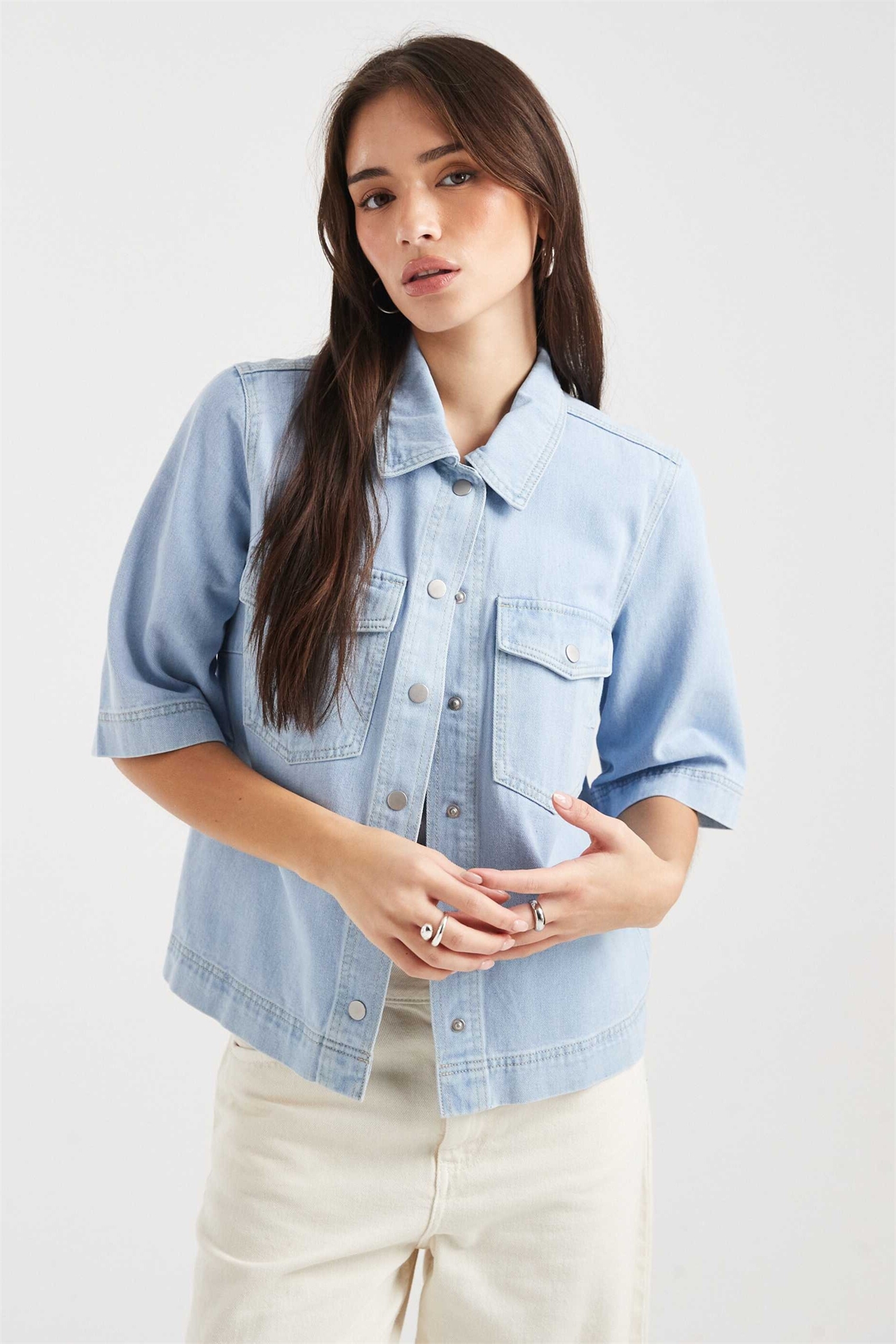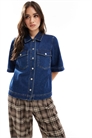 Джинсовая рубашка прямого кроя с короткими рукавами